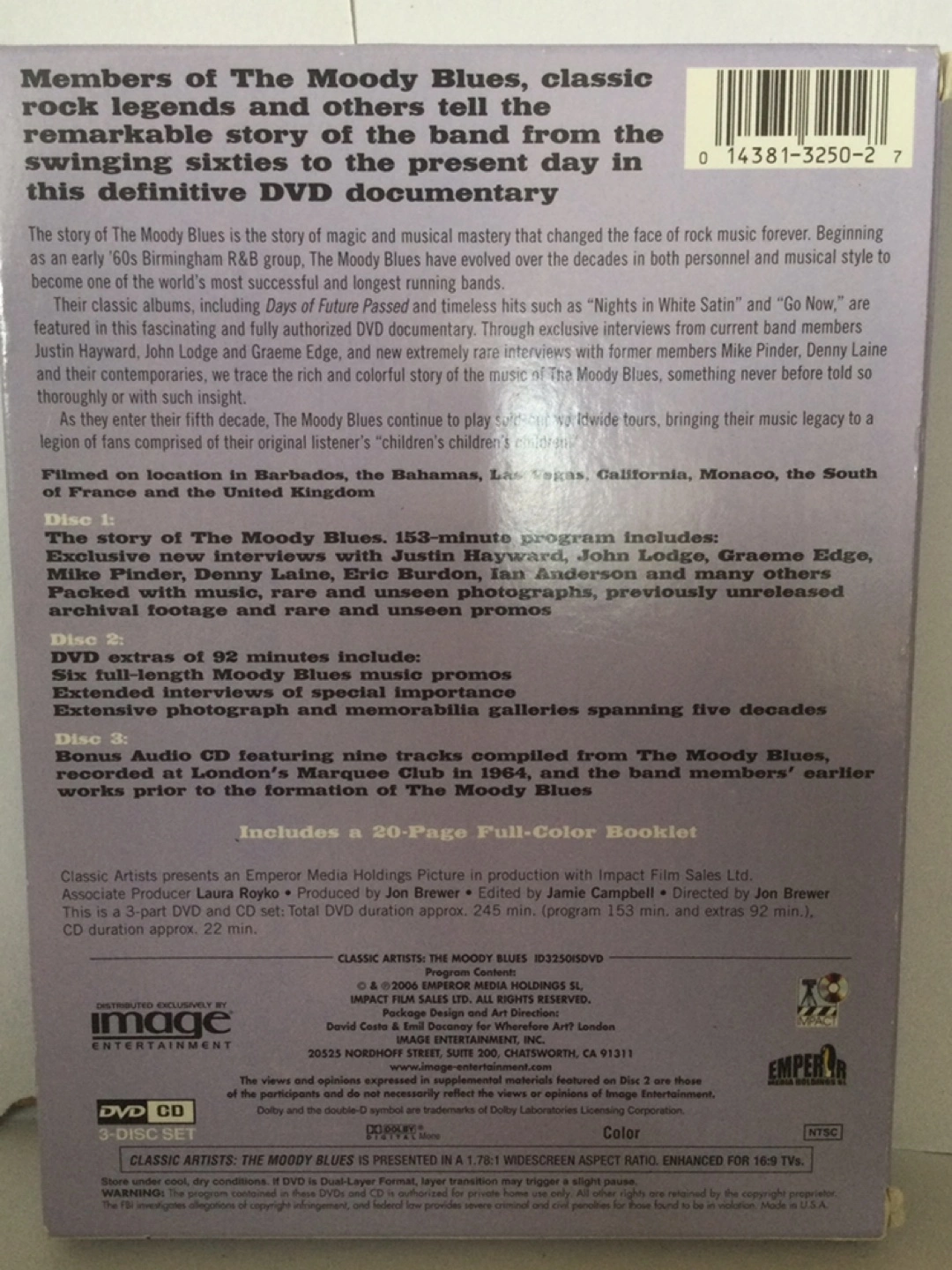 Limited edition 3-disc DVD and CD set. Includes previously unreleased archival footage and interviews. Features members Mike Pinder, Denny Laine, Justin Hayward, John Lodge and Graeme Edge. Spanning five decades of music.
