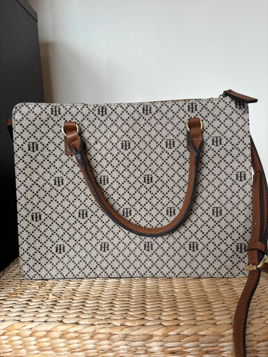 Tommy Hilfiger Beige and Brown Monogram Satchel