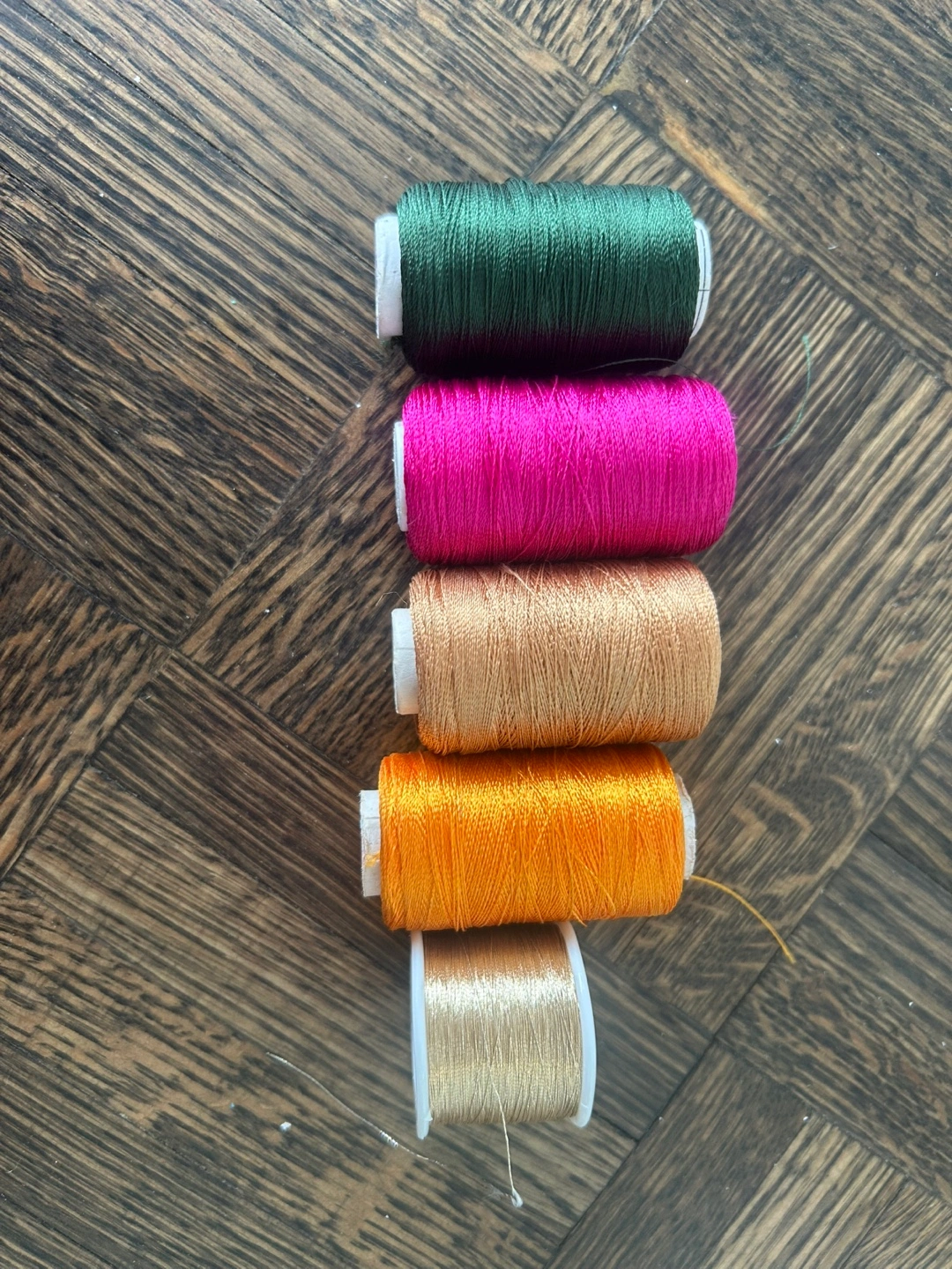 Five spools of colourful embroidery thread. Great for sewing and crafting projects. Various colours included.