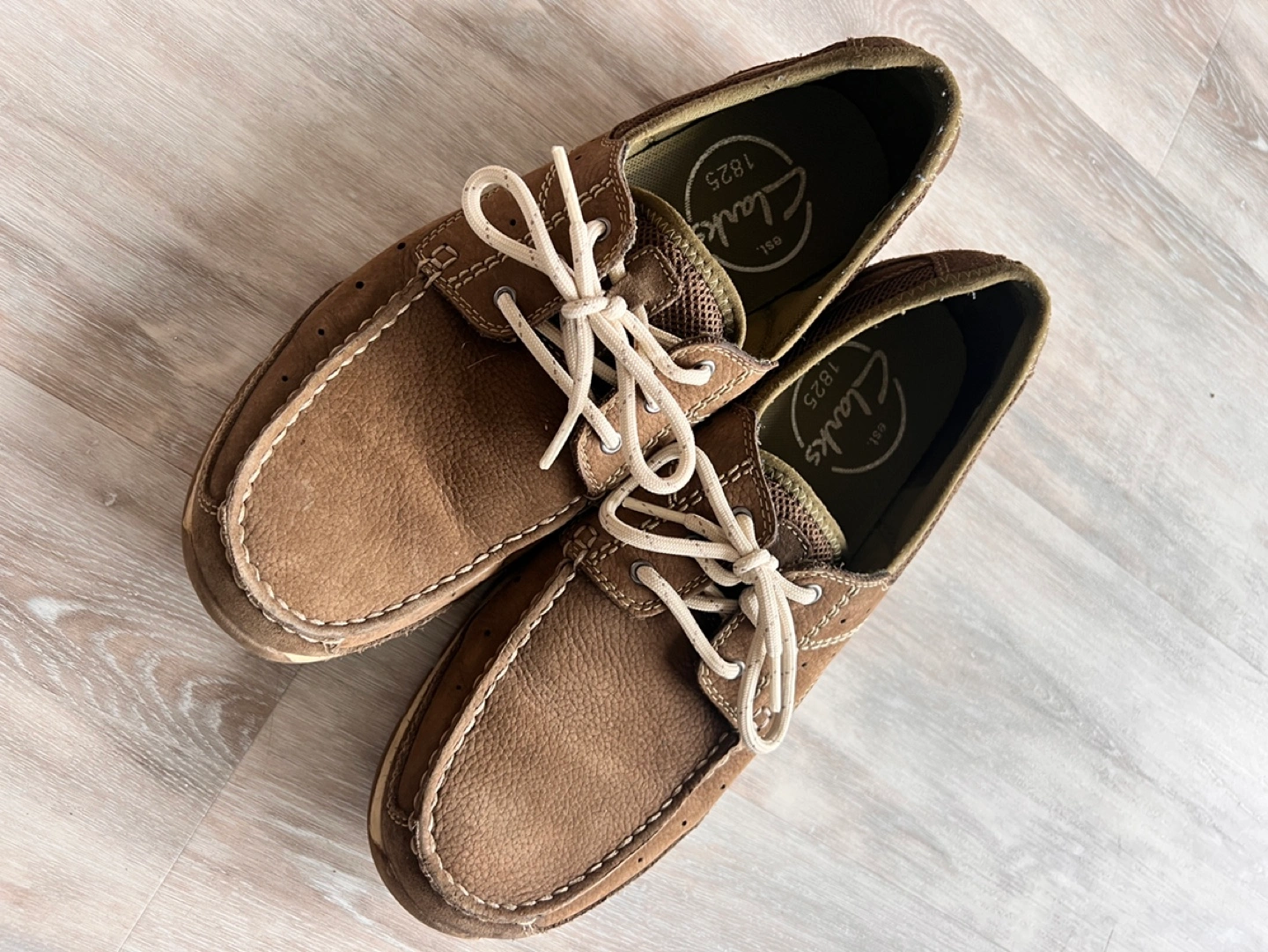 Brown leather boat shoes. Lace-up closure. Good condition. Men’s 10