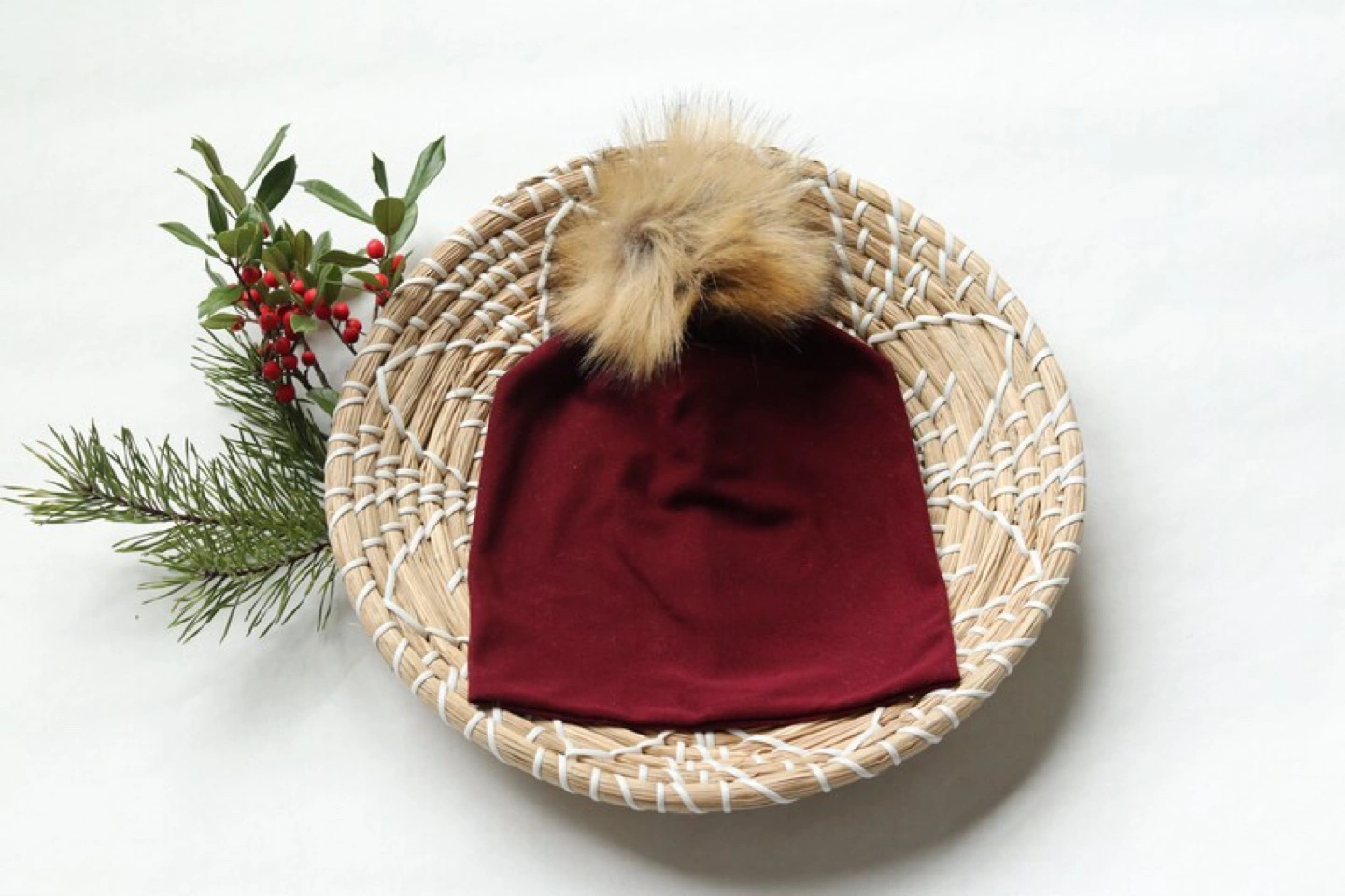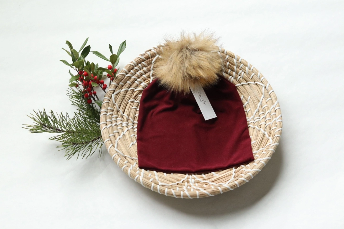 Adorable burgundy velvet beanie. Features a soft faux fur pompom. Perfect for winter. Gently used. Never worn-tags on • 10/10 Condition⭐️ I have 2🫶🏽 🩷