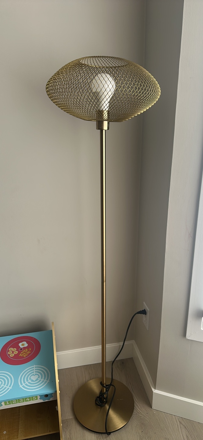 1 / 11 / 1Buy & SellGold Metal Mesh Floor LampGold Metal Mesh Floor Lamp$50Tall gold floor lamp. Features a unique wire mesh shade. Modern style. Simple assembly required.WHERE TO MEETCheck LocationView MapSELLERverifiedAlexandraForest Lawn1418 reviews0 chats·0 favorites·47 viewsSEND CHAT TO SELLERHi Alexandra! I’m interested in your listing.Hi Alexandra! I’m interested in your listing.Get the Karrot app to chatSign In to chat