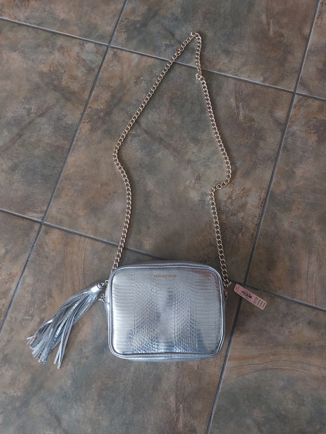 130Brand New Victoria's secret silver metallic chain link crossbody bag size : 20 x 15 x 5 cm