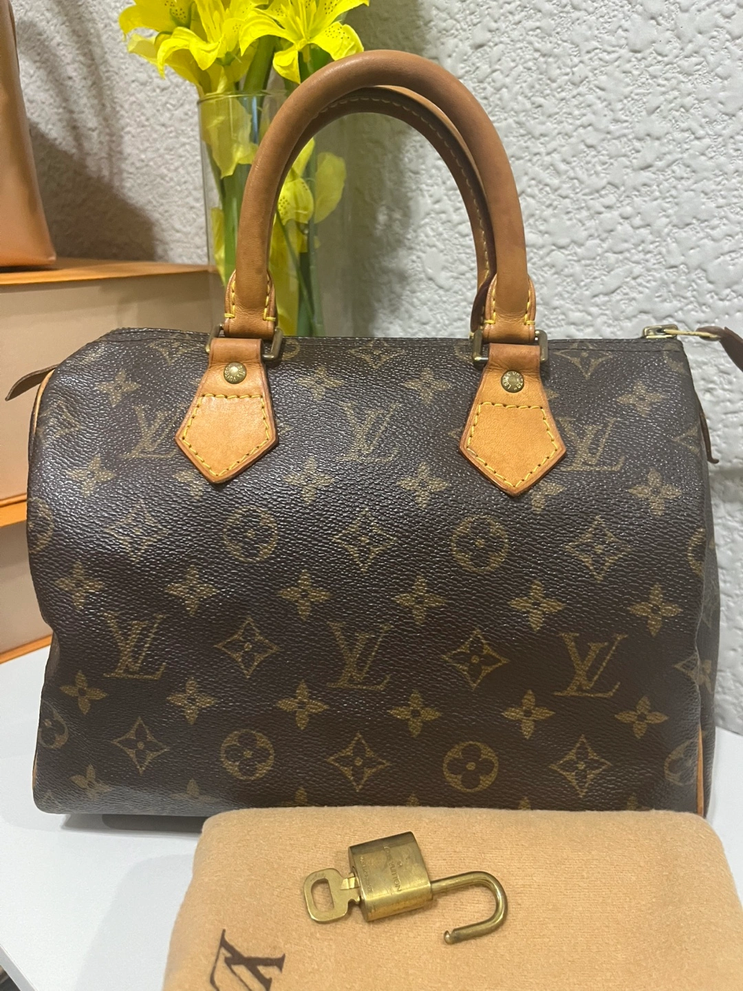 Buy & SellAuthentic Louis Vuitton Speedy 25 Monogram HandbagAuthentic Louis Vuitton Speedy 25 Monogram Handbag$725Pre-loved Louis Vuitton Speedy 25 handbag. Monogram canvas. Brown leather trim. Includes dust bag and lock. Zip closure.Size25BrandLouis VuittonWHERE TO MEETWestsydeView MapSELLERverifiedMa PlazaWestsyde650 reviews1 chats·1 favorites·34 viewsSEND CHAT TO SELLERHi Ma Plaza! I’m interested in your listing.Hi Ma Plaza! I’m interested in your listing.Get the Karrot app to chatSign In to chat