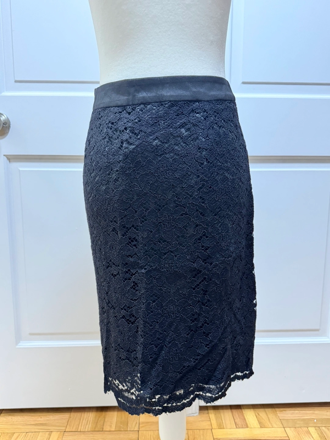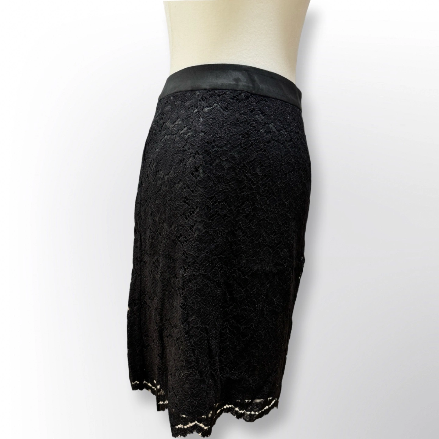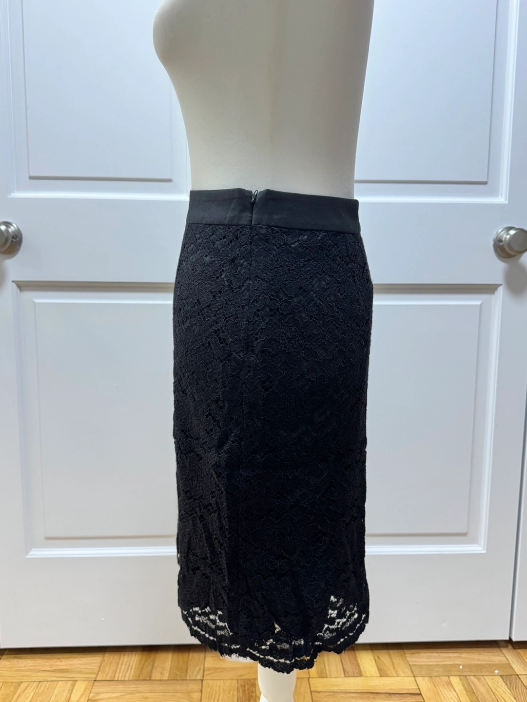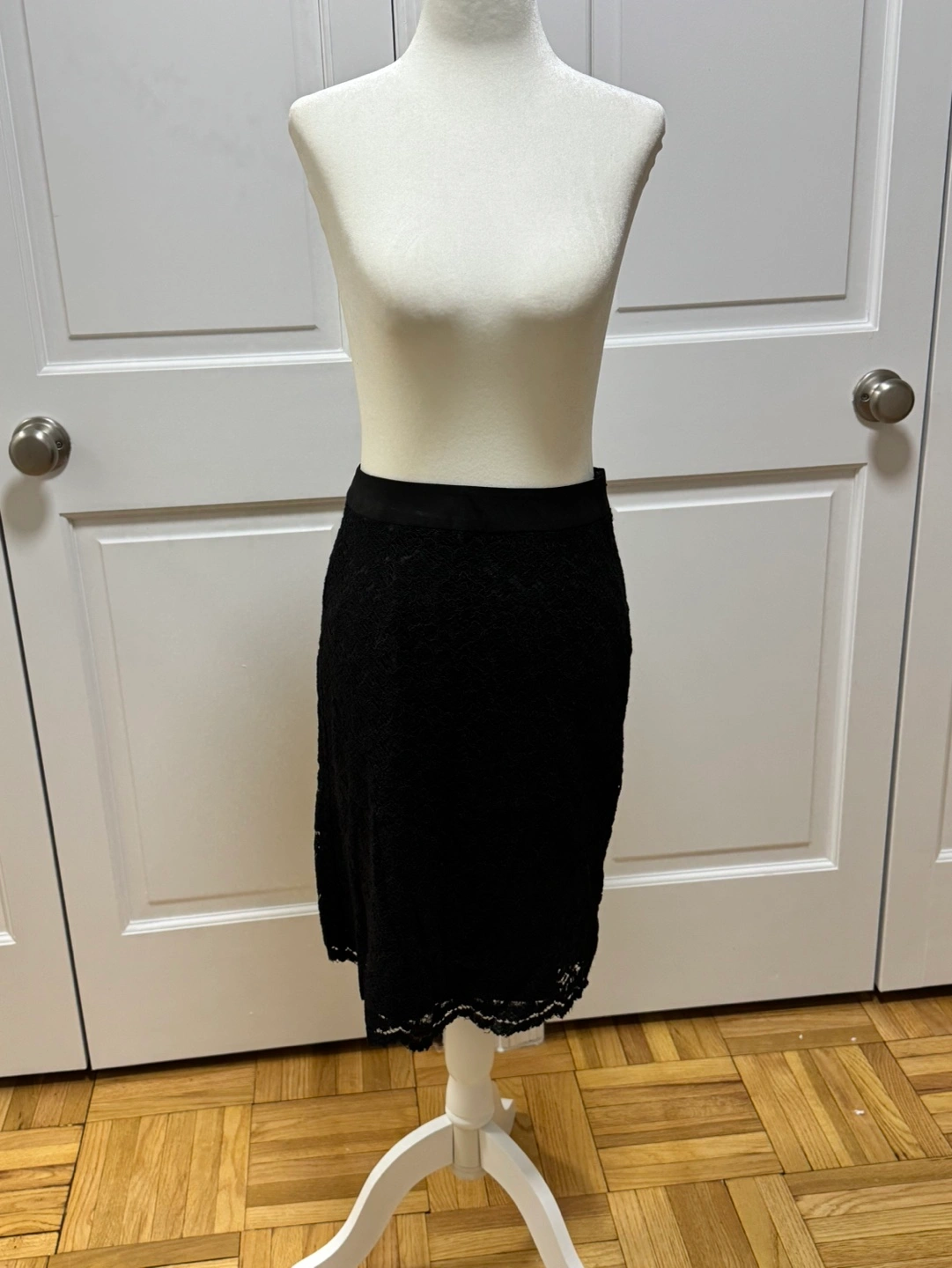 New with tags! Women's black lace pencil skirt. Features a scalloped hem and a solid waistband. Knee-length. Retails for $69.