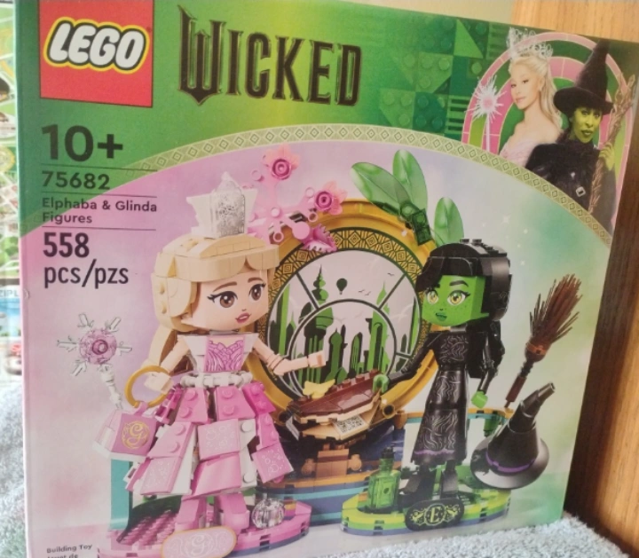 LEGO Wicked building set. Features Elphaba and Glinda figures. 558 pieces. Ages 10+. Includes accessories.