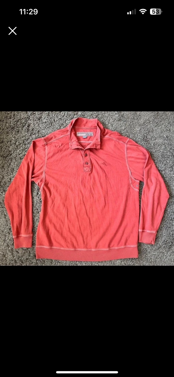 For sale is an authentic, rust colour, Tommy Bahama long sleeve shirt in a size x-large. The shirt is in good condition, no rips, stains or odors. It is clean and ready to be worn.