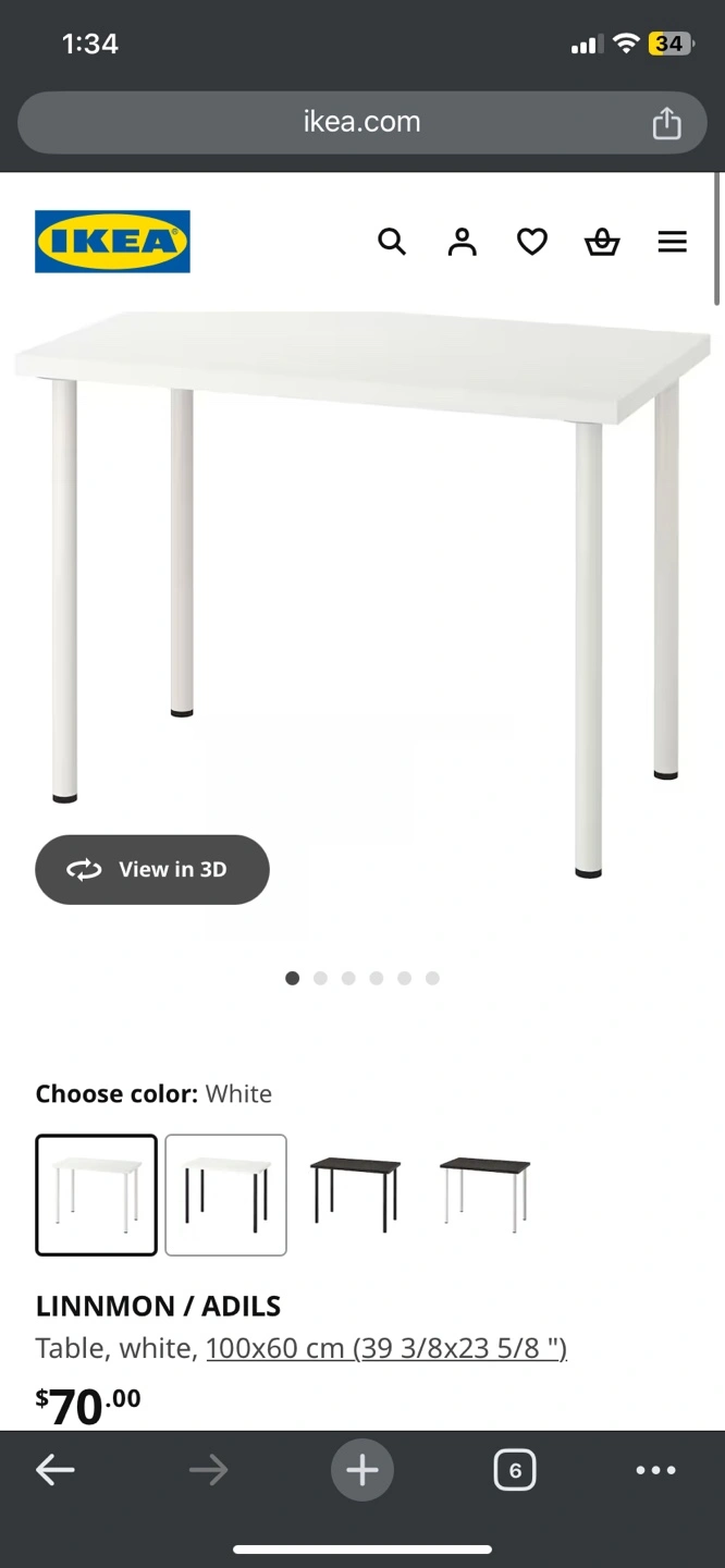 IKEA LINNMON/ADILS Table - White - 100x60 cm