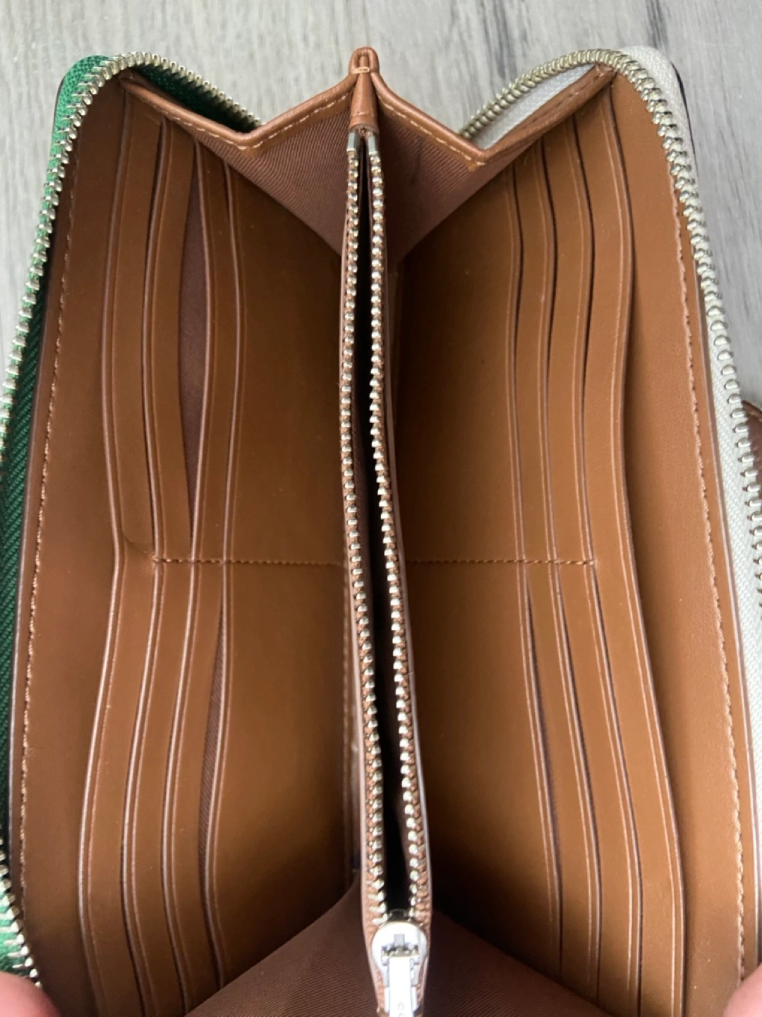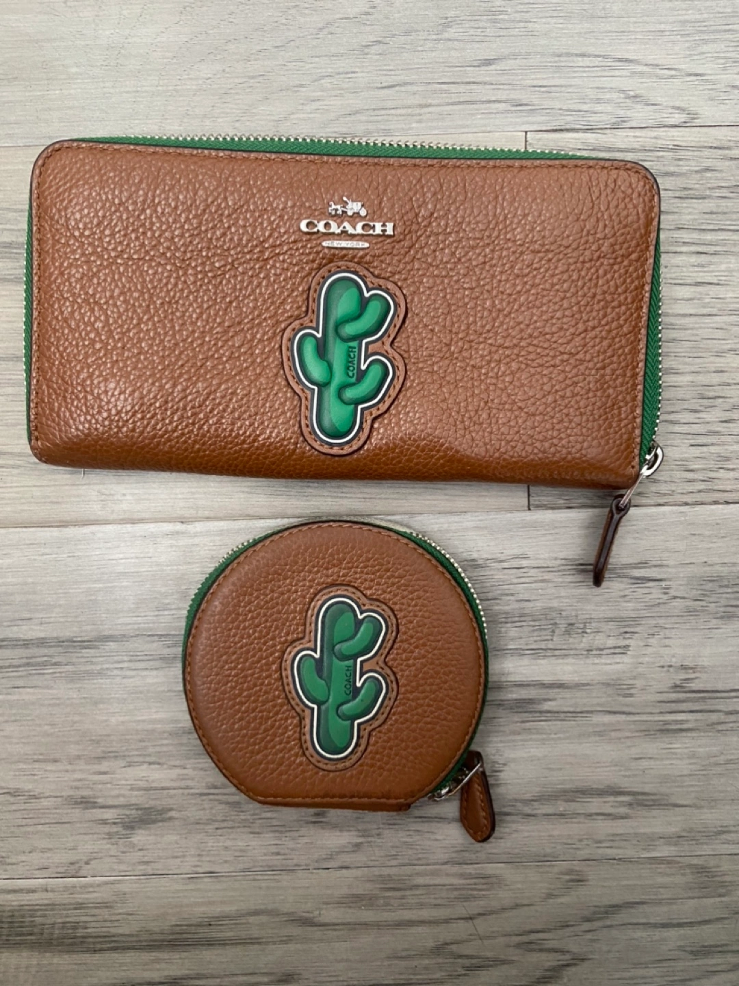 10Brown leather zip-around wallet and coordinating coin purse. Cactus print detail. Excellent condition. Obo
