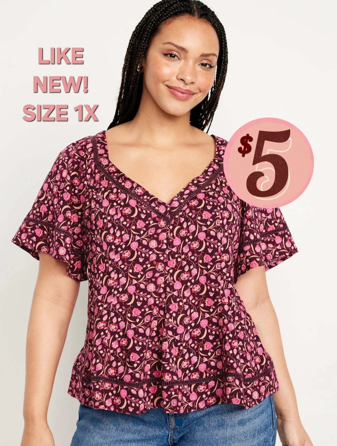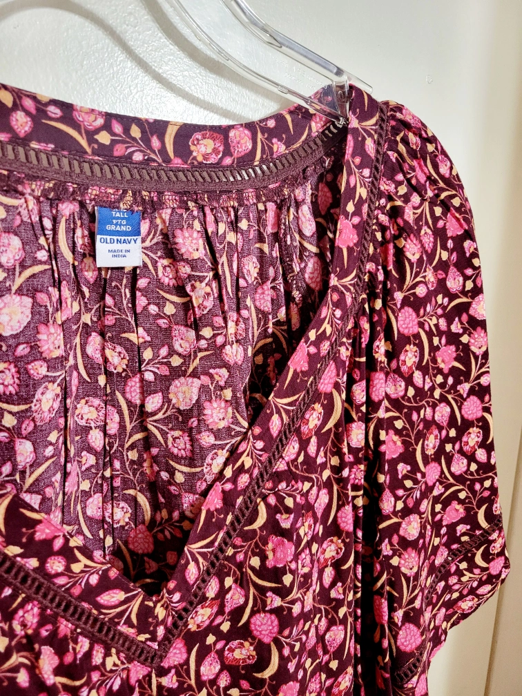 254Flowy Floral Top -EXCELLENT CONDITION! LIKE NEW! -ONLY WORN A COUPLE TIMES! -Size: Women's 1X (XXL TALL) -Material: Mixed (see photo gallery) -Colour: Pink, Burgundy, Deep Purple -Print: All-over florals -Trim details on sleeves & hemline -Modest neckine -Ample upper arm coverage! -Meets the hip (tummy coverage) -Flowy and feminine feels! 📸PLEASE SEE PHOTO GALLERY FOR MORE DETAILS ABOUT THIS ITEM📸 Asking only $5 (FIRM & FINAL) 💰CASH PREFERRED, PLEASE💰 ⚠️Please only message if you are SERIOUS about buying AND you know when you'd like to pick up.⚠️ 🚙Located in North Oshawa BEATRICE & RITSON area.🚙 ⏰️No holds longer than 2 days.⏰️ ❗️POSTED ON VARAGESALE, KARROT, & MARKETPLACE❗️