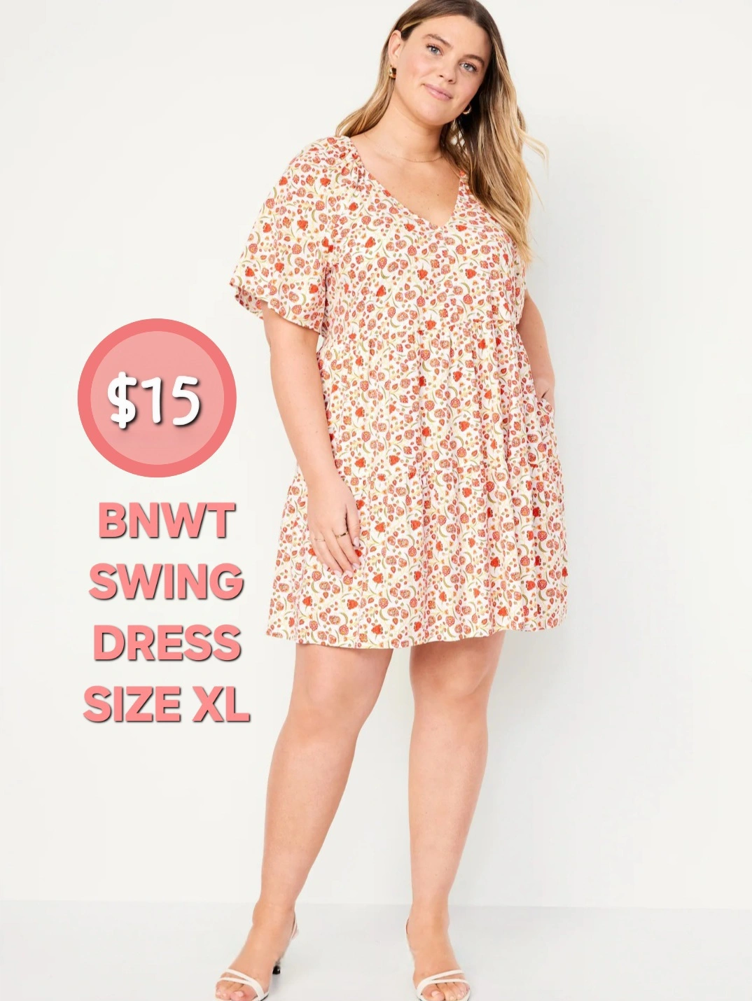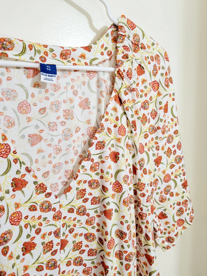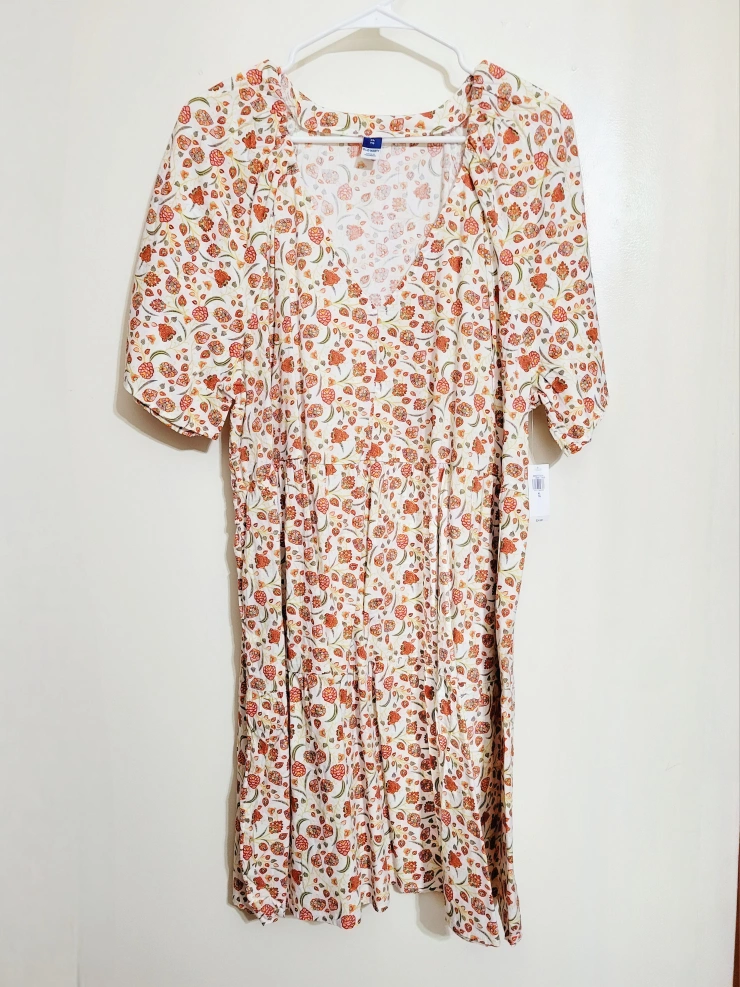 254Pretty Swing Dress -From/Brand: Old Navy -BRAND NEW WITH TAGS STILL ON! -NEVER WORN! -Size: Women's XL -Material: 55% Cotton, 45% Rayon -Colour: Cream with pink & orange flowers -Print: Florals -Modest V-neckine -Short, spacious sleeves -Has 2 functional pockets! -Swing style -Knee-length on a 5'2" female frame -Cool and comfortable -Perfect for Spring and Summer weather! 📸PLEASE SEE PHOTO GALLERY FOR MORE DETAILS ABOUT THIS ITEM📸 Asking only $15 (FIRM & FINAL) 💰CASH PREFERRED, PLEASE💰 ⚠️Please only message if you are SERIOUS about buying AND you know when you'd like to pick up.⚠️ 🚙Located in North Oshawa BEATRICE & RITSON area.🚙 ⏰️No holds longer than 2 days.⏰️ ❗️POSTED ON VARAGESALE, KARROT, & MARKETPLACE❗️
