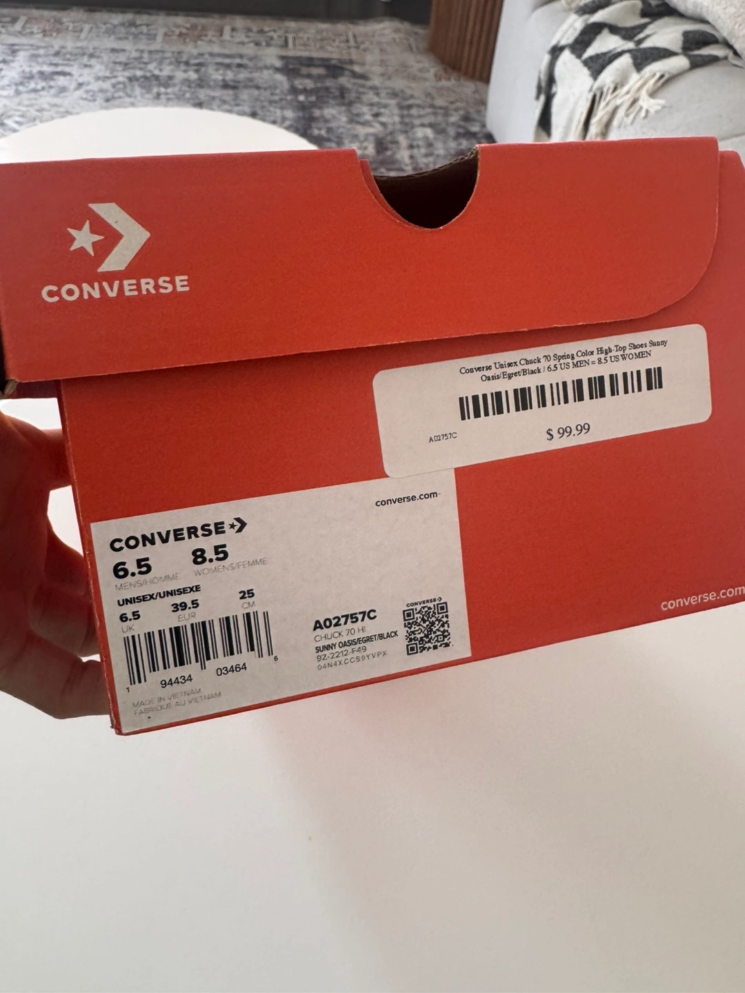 New Converse Chuck Taylor All Star high top sneakers. Colour:Sunny Oasis. Size 8.5 women. Comes in original box.