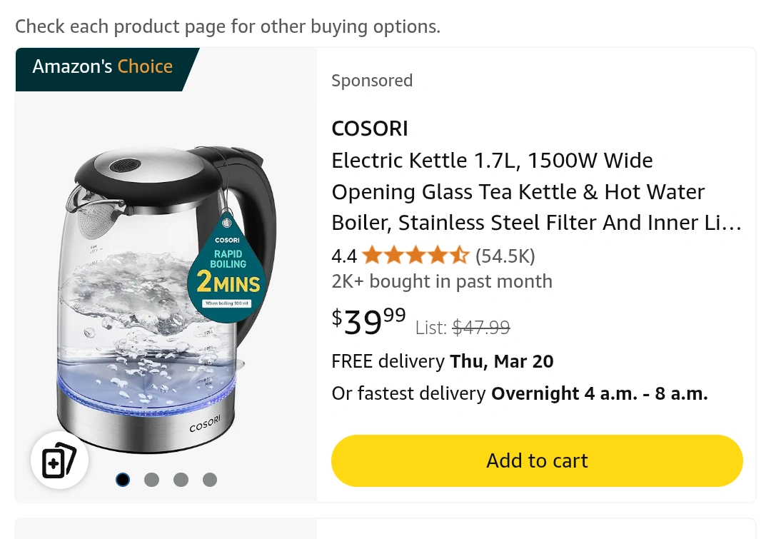 COSORI Electric Glass Kettle - 1.7L, 1500W