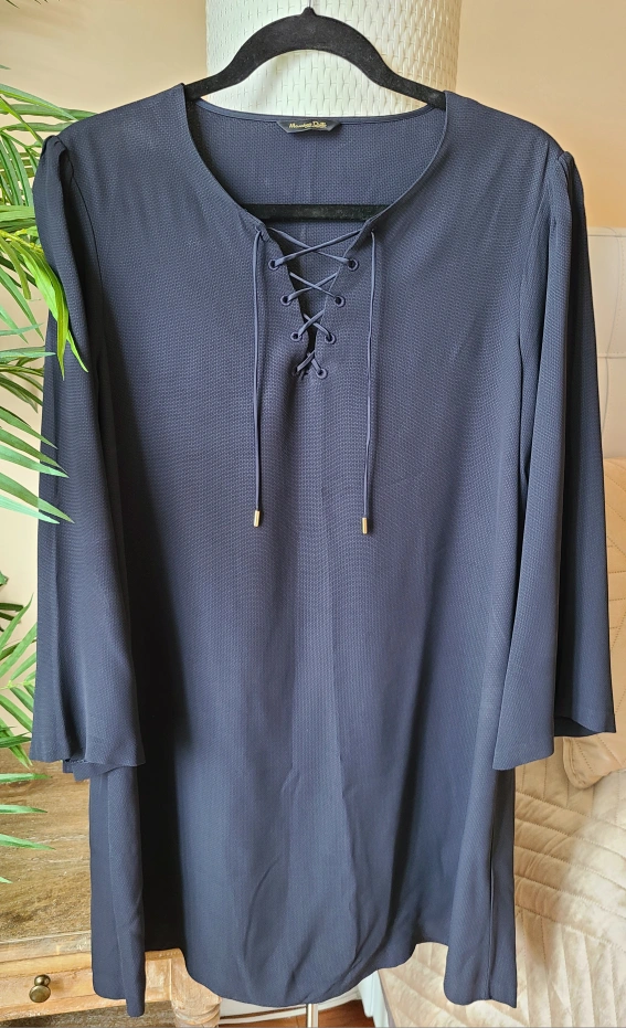 Massimo Dutti Navy Blue Lace-Up Dress