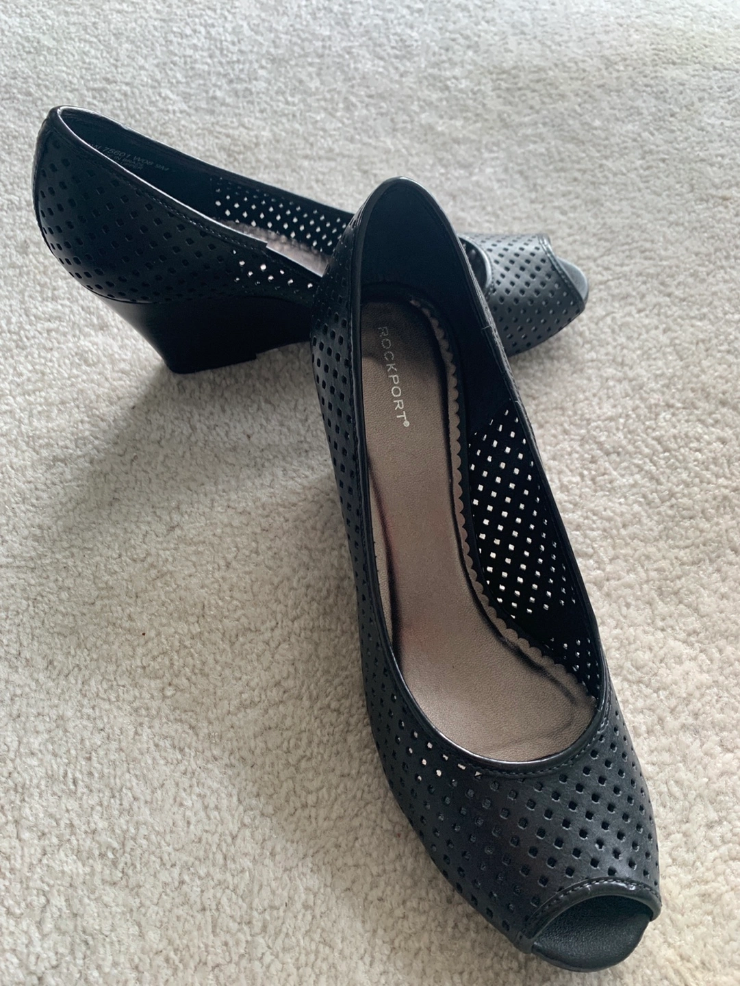 Rockport Black Perforated Peep-Toe Wedge Heels brand new