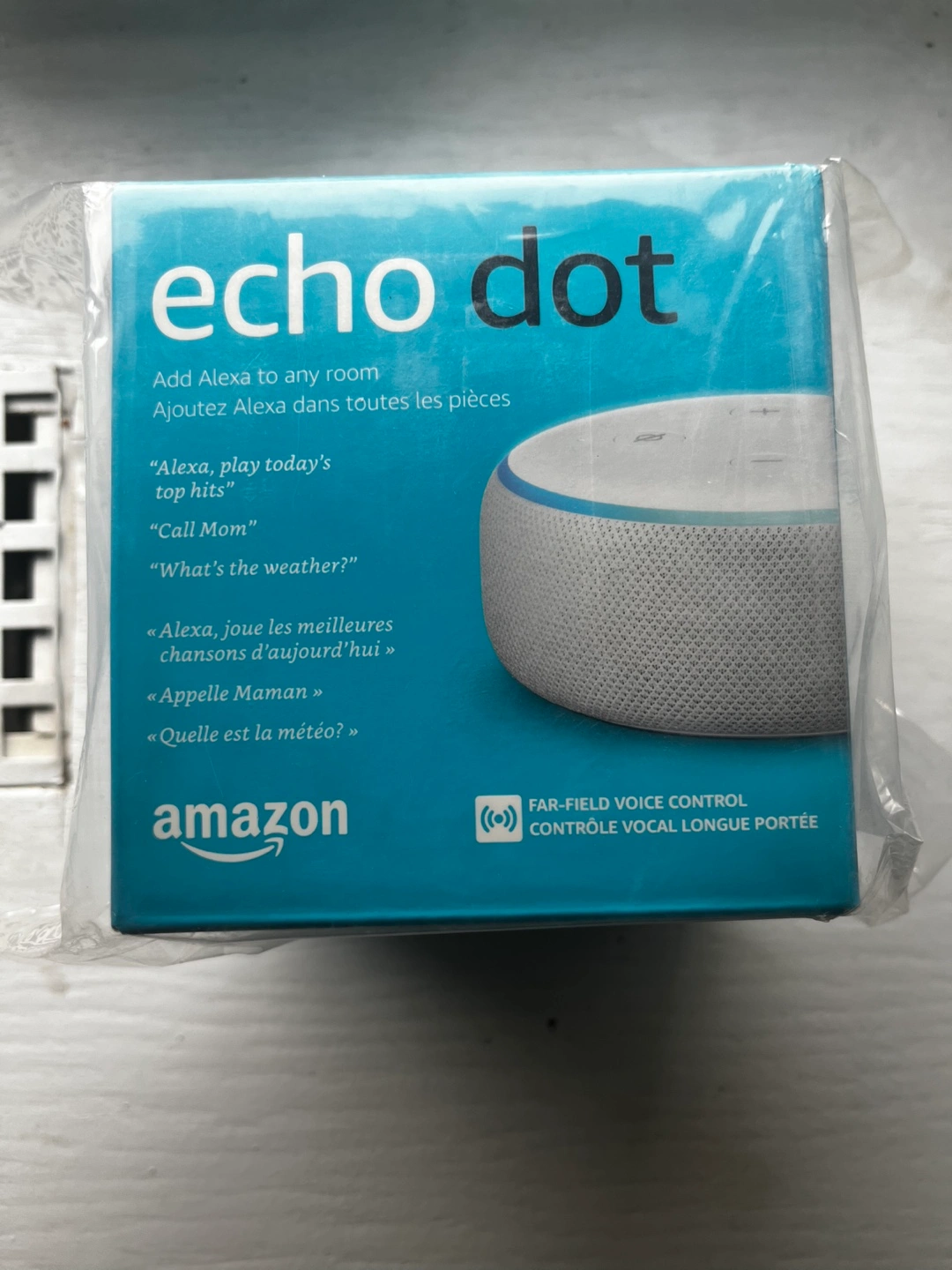 New speaker and design, Echo Dot is a voice-controlled smart speaker with Alexa and perfect for any room. Just ask for music, news, informa-tion, and more. You can also call almost anyone and control compatible smart home devices with your voice. •Pick up at 385 Osler street.