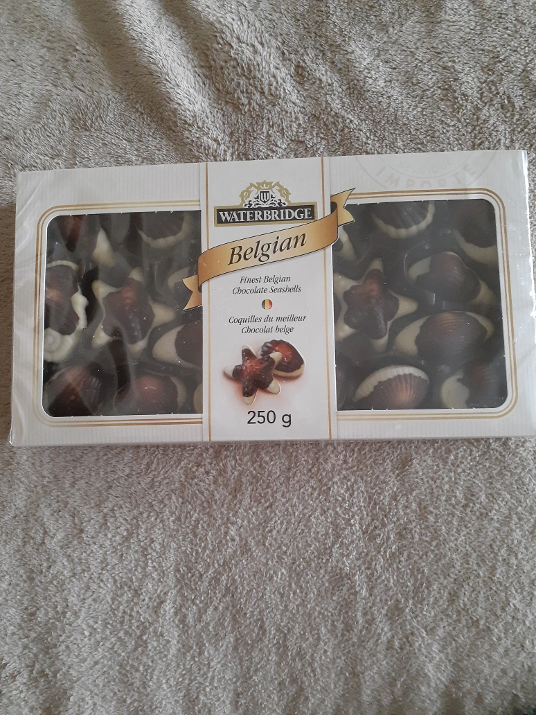 Available! Box of Belgian chocolate seashells. 250g. Finest Belgian chocolate. Cash and porch pickup close to Willowdale Middle school or North York Center Station/ Empress Walk.