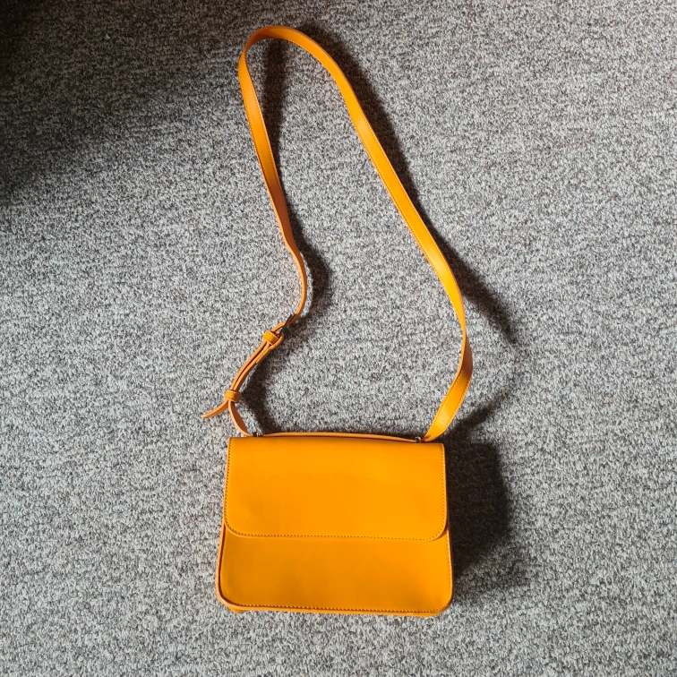 Small orange crossbody bag from Forever 21. Adjustable strap. Features gold-toned hardware. Soft interior lining. Slight wear.