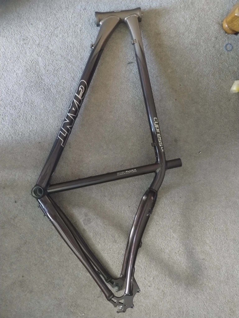 Giant Cypress LX mountain bike frame. 6061 ALUXX aluminum tubing. Dark brown colour. very lightly Used.