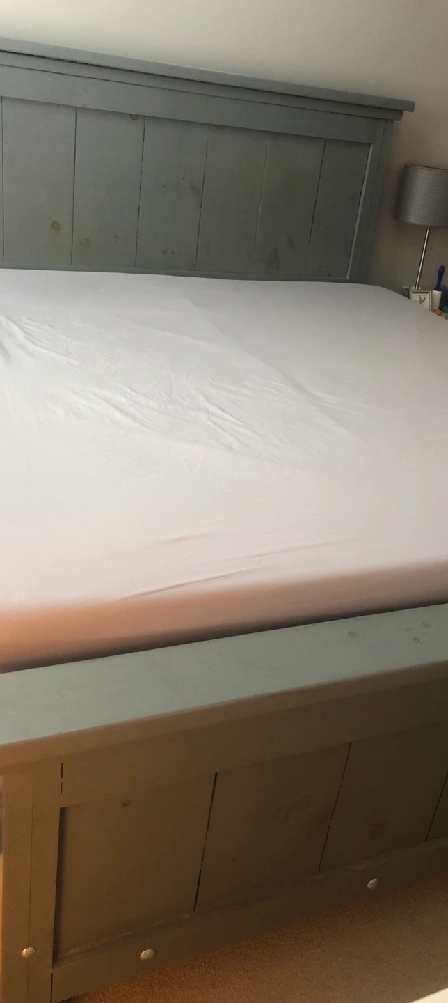 *will remove the plain wood boards seen in photos… we had converted it to a king.