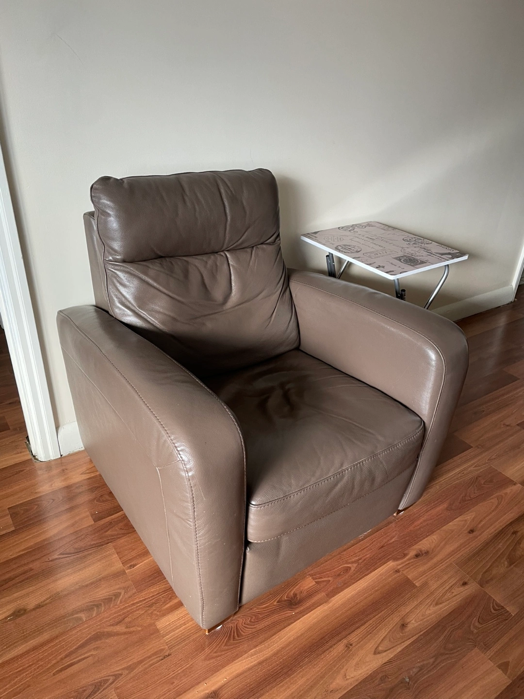 Modern Grey Accent Chair – Wide Seat, Wood Frame