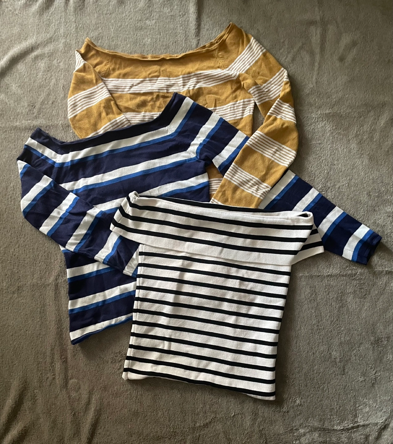 Bundle of Three Striped Off-the-Shoulder Tops