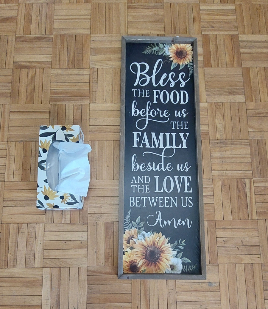 Beautiful fall-themed wall decor. Features sunflowers and a religious message. Perfect for home décor. New, never hung. $5