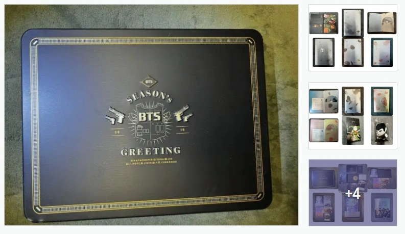 Metal box set. Includes various items. Check out these official BTS albums & merch available now at great prices! Perfect for collectors and fans alike.