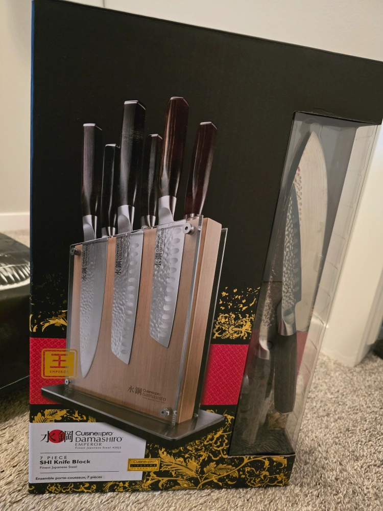 7-piece knife set in a wooden block. Finest Japanese steel. Emperor series.