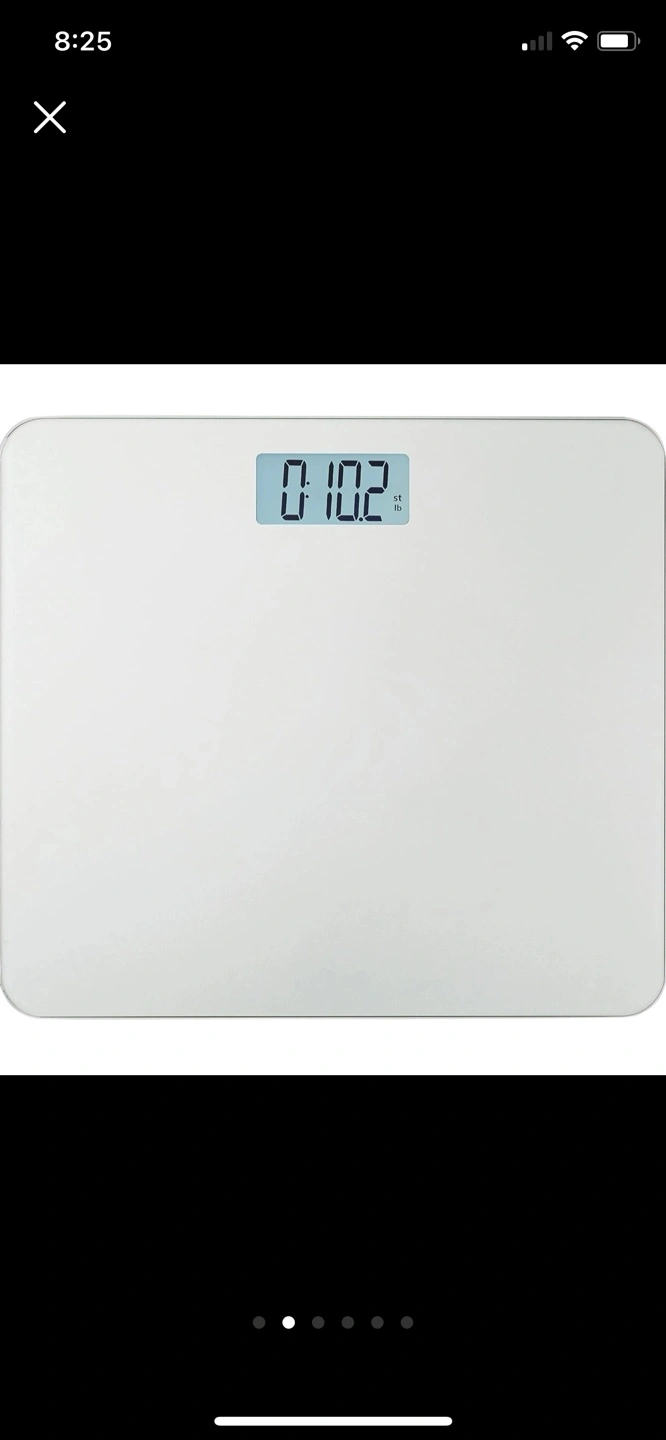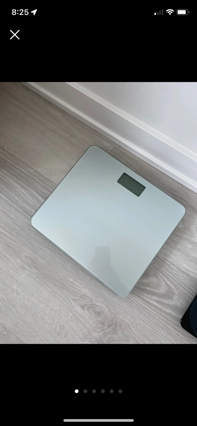 Glass top, digital display. Measures weight in kilograms and pounds. Like new.