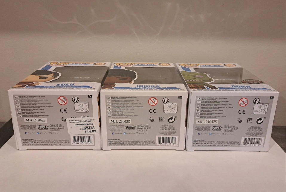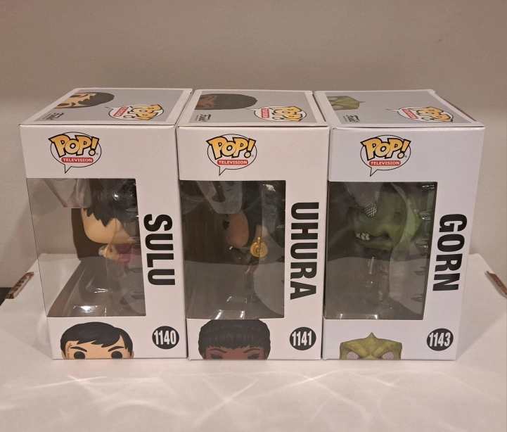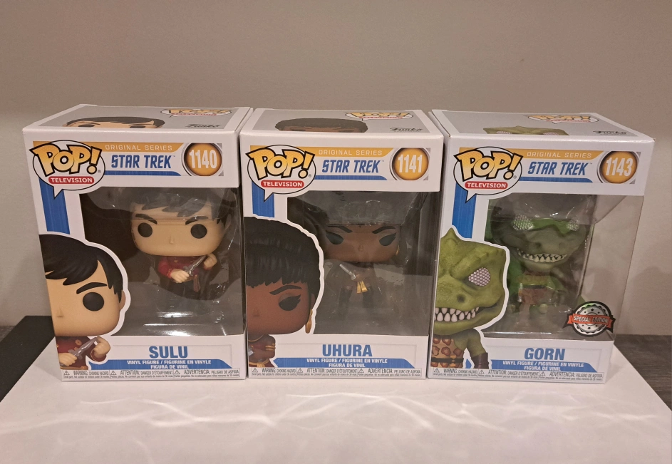 Star Trek original series #Funko Pop! vinyl figures. #StarTrek #CaptainKirk #Khan #Sulu #Uhura #Gorn Sulu 1140 : $10 Uhura 1141 : $10 Gorn 1143 (Special Edition) : $13 Buy these 3 for $30 Buy all 5 (along with Captain Kirk 1136 and Khan 1137) for $45 Please check photos for details (e.g. tear, wear or crease). Where to meet: (1) Near #MarkhamCathedral, or (2) Near #SherborneBloorEast #YongeBloor (limited pick up dates and time), or (3) #YongeFinch Go Bus terminal (limited pick up dates and time) Item(s) need to find a new home. Don't forget to #CheckOut my other listings!