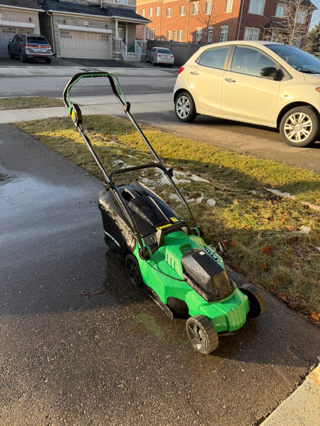 Electric lawn mower, battery powered and cordless