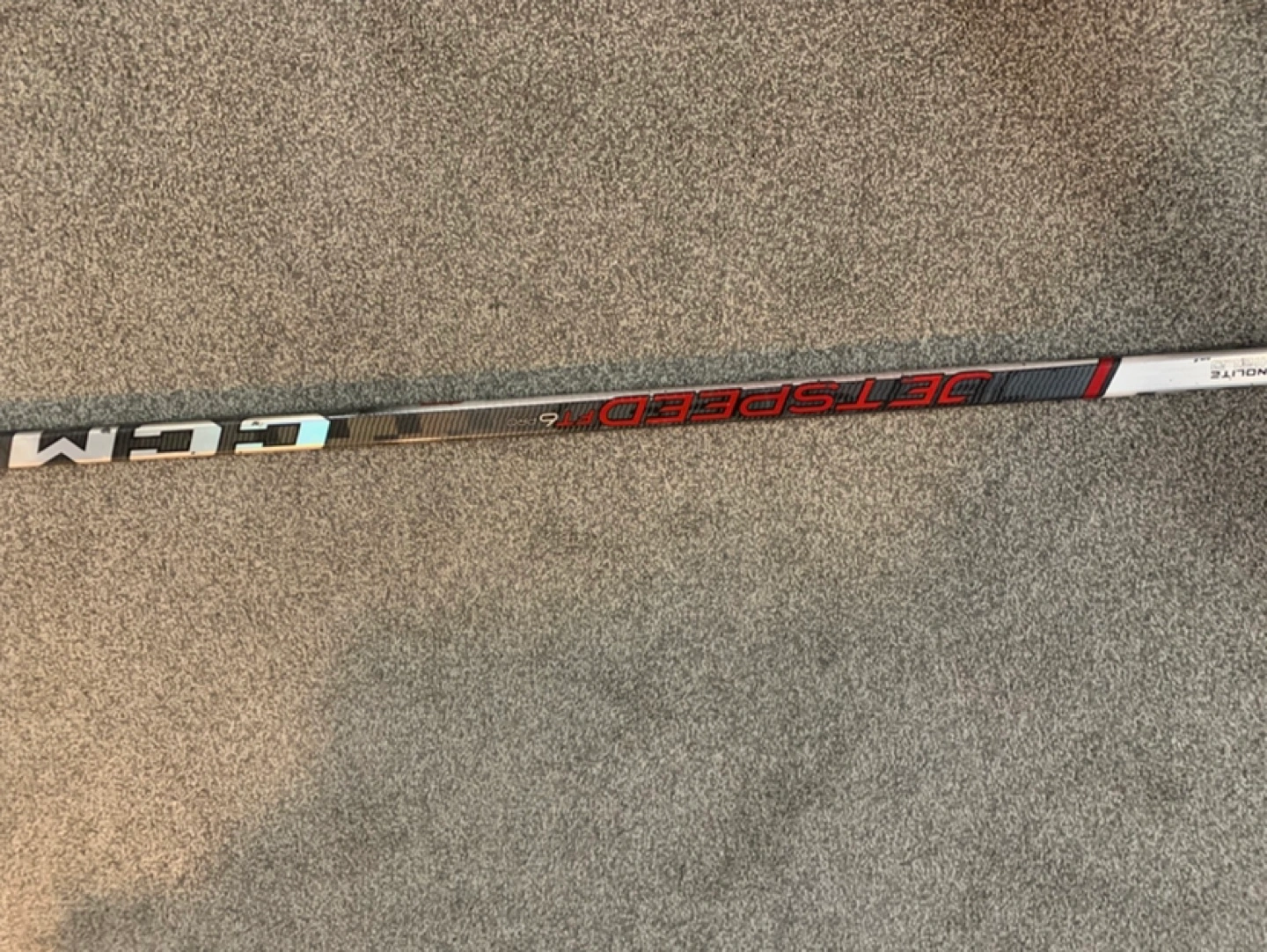 Used CCM Jetspeed hockey stick. Good condition. Right-handed. Senior. Great for practice or casual games. Senior/55 flex, no major damage to worry about, and bought it brand new last season.