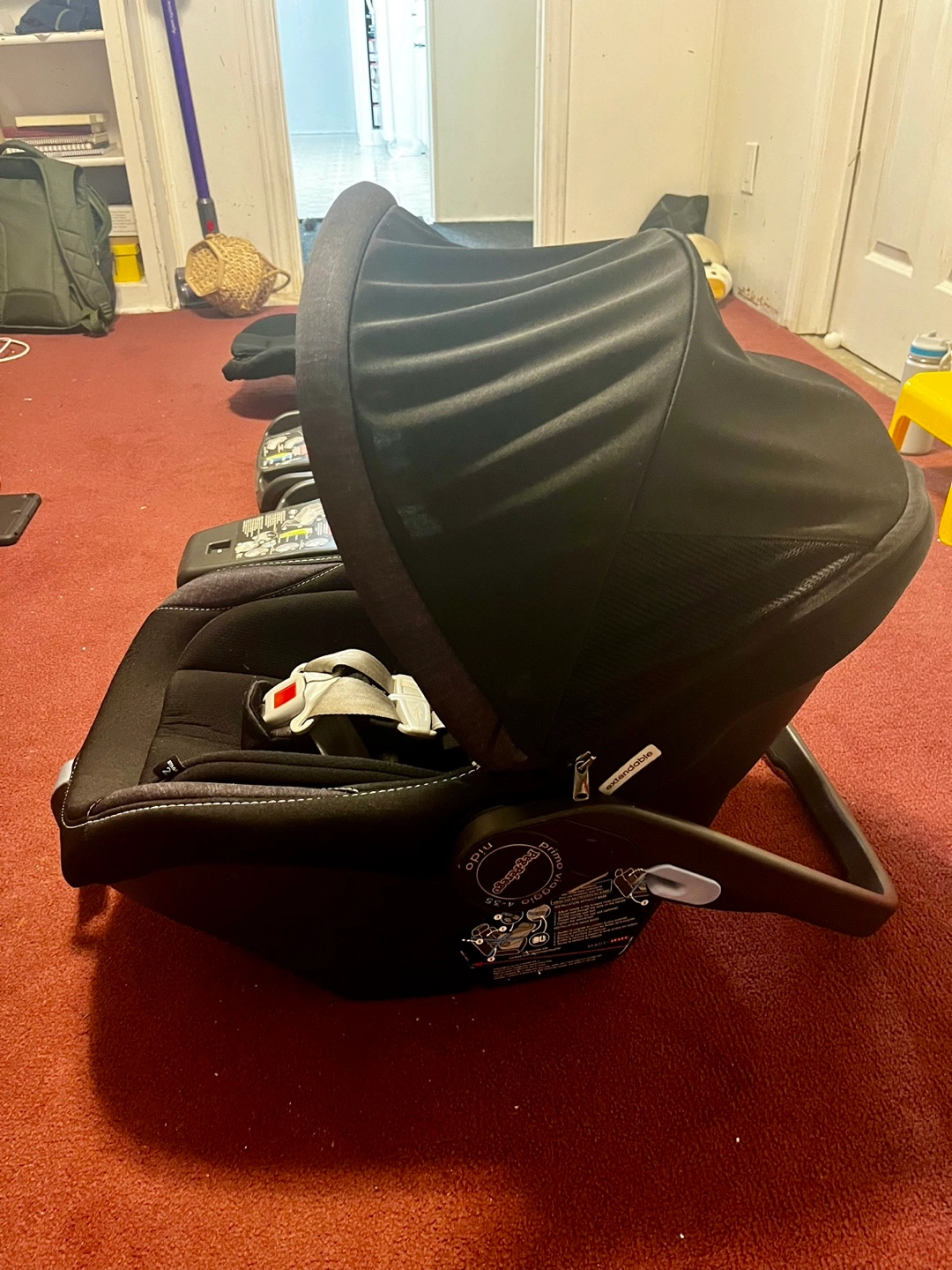 ✔ Two car seat bases – one with a load leg for extra stability (could use a quick wipe down)