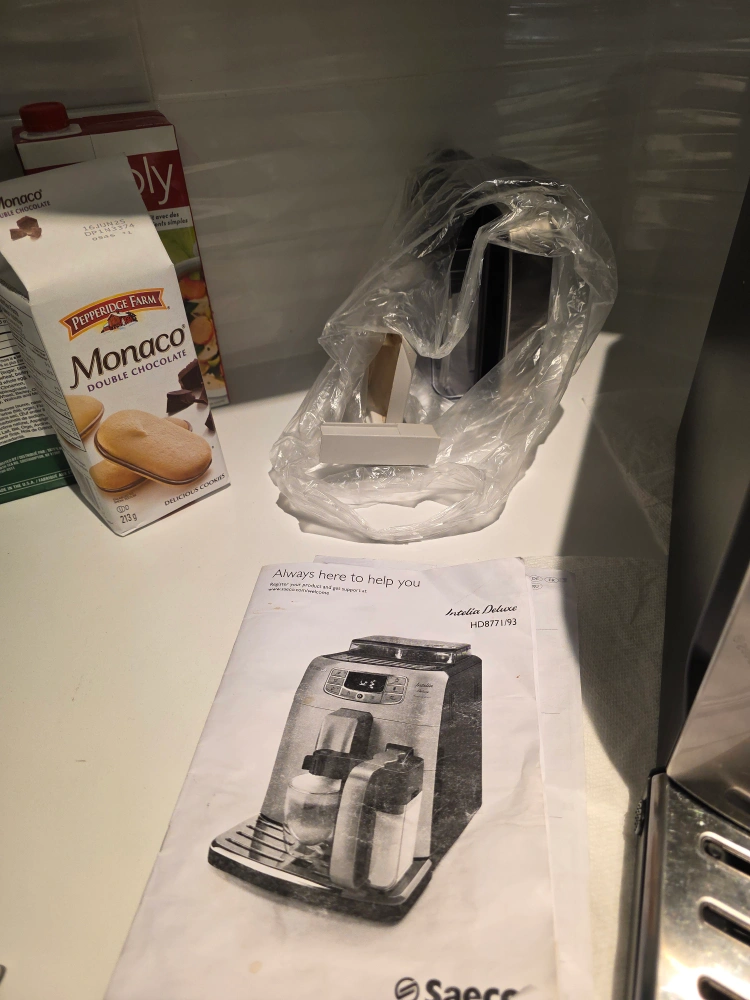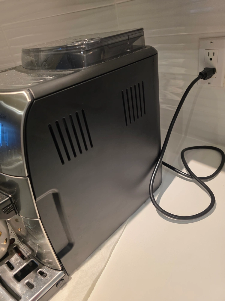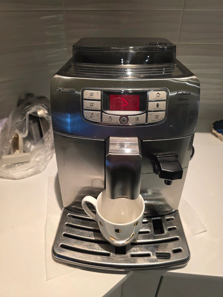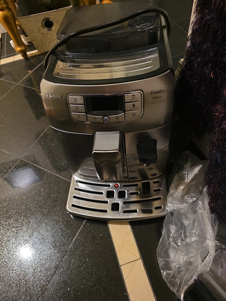 Automatic espresso machine. Makes various coffee drinks. Includes instruction manual. Used condition.