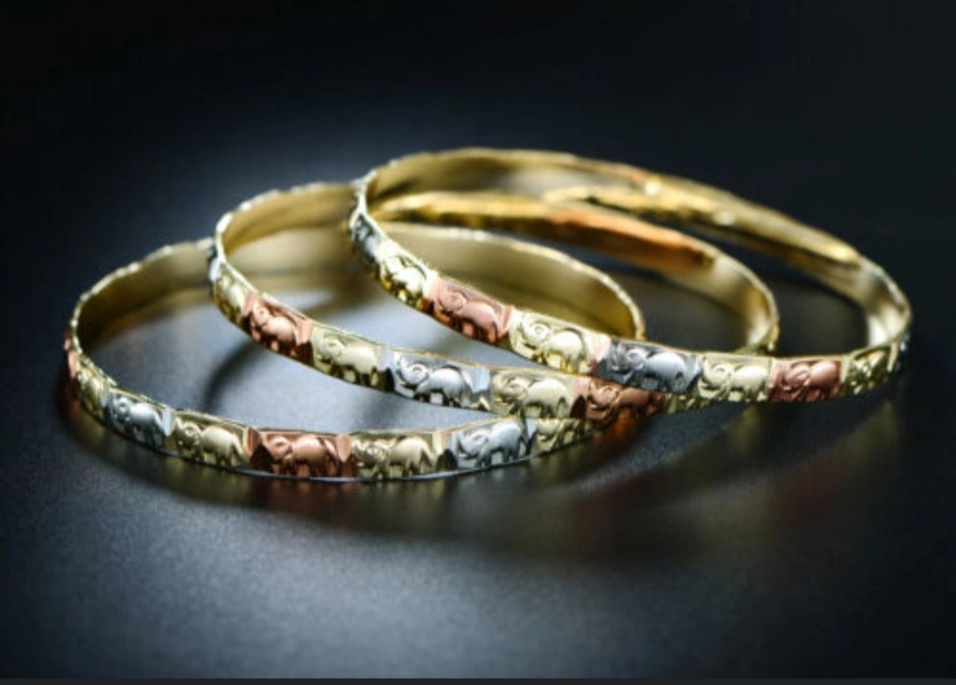 Sevil 18K 3-Tone Gold Plated Elephant Bangles Set of 3