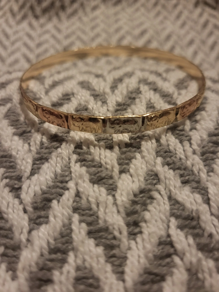 Metal is Brass and is 18K 3-Tone Gold Plated