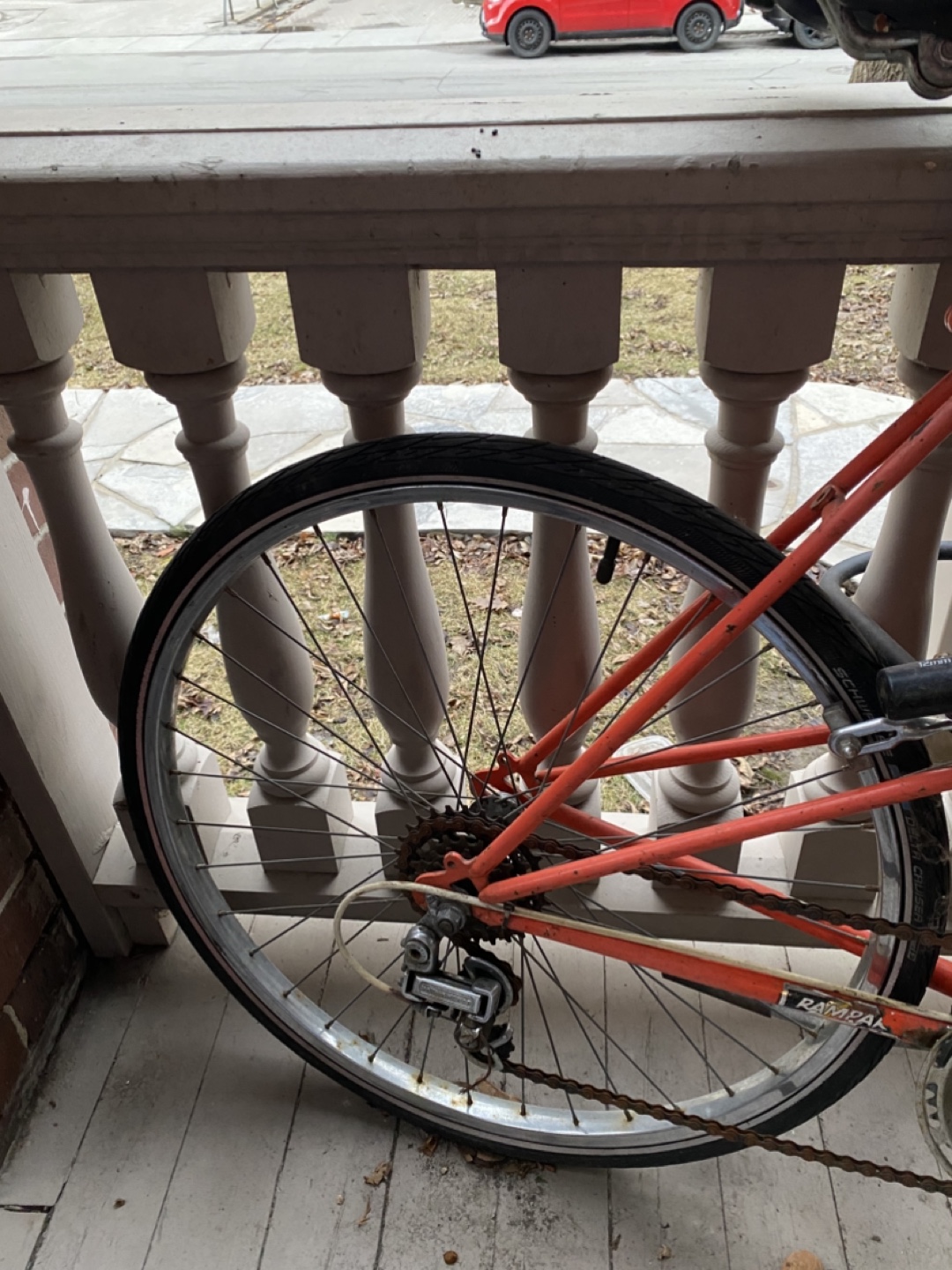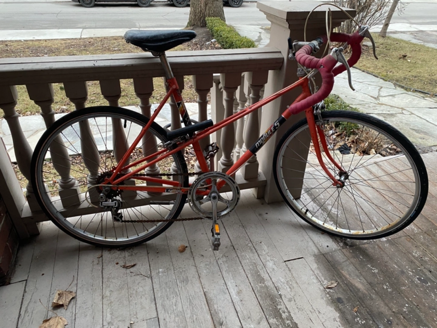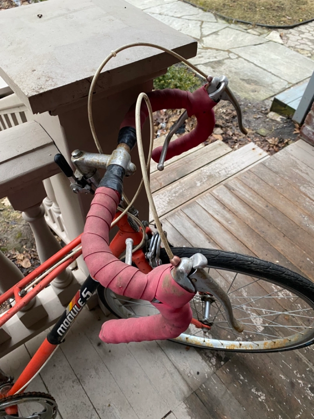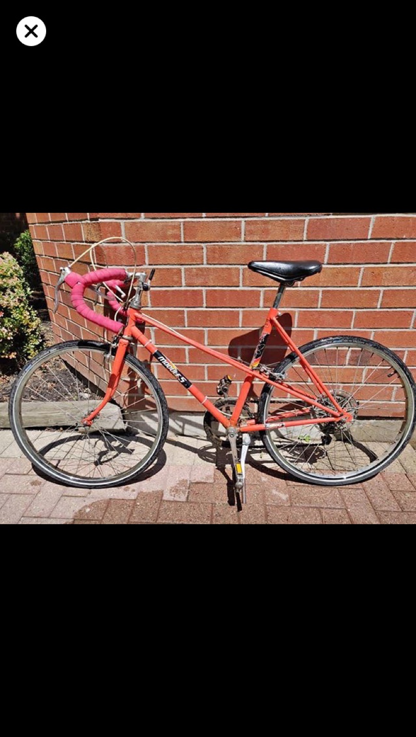 Super cute coral vintage Raleigh Rampar road bike. Best for shorter riders, 5’4 and under. Approx. 17” frame. 3-speed. Classic drop handles wrapped in pink bar tape.