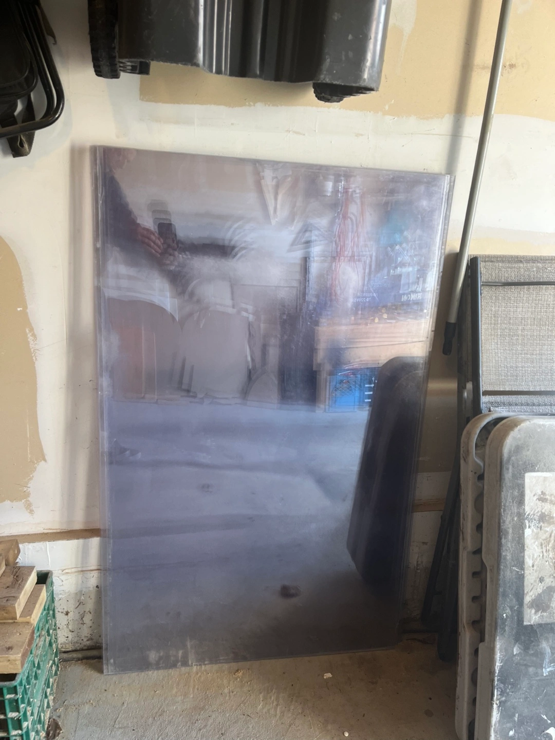 Large sheet translucent plastic. Good for various projects. Shows some minor scuffs and dust from storage.