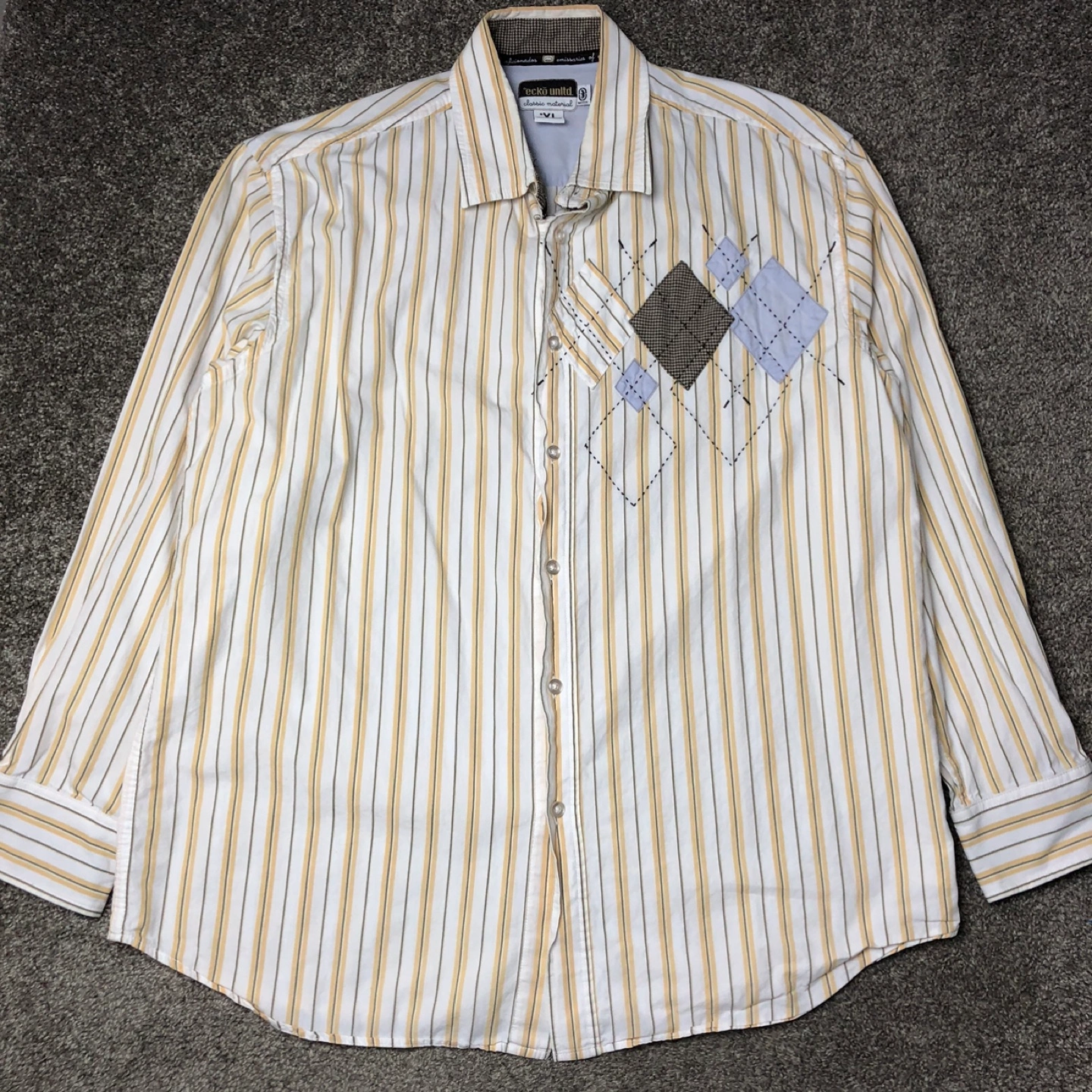 ECKO Unltd Button Down. Size XL. In good condition. Please view all pictures and don’t forget to double check your measurements. Cross posted, FCFS, NO HOLDS. Located in Ellerslie