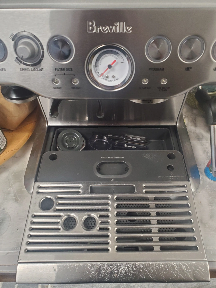 Used Breville Barista Express espresso machine. Grinder, steam wand, and multiple settings. does not Include portafilter assembly 54mm, milk jug, and also needs a new filter water tank resin. cash only.