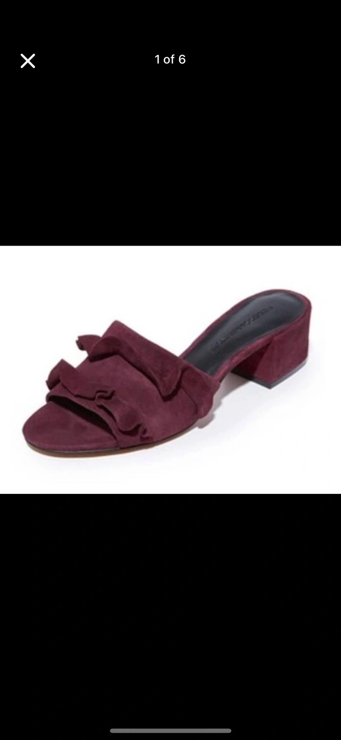 233rebecca minkoff size 6 "isabelle" suede mules worn twice https://modesens.com/product/rebecca-minkoff-isabelle-ruffle-mule-sandal-acai-2809226/?srsltid=afmbooq3zebzjaklgd0nhqq1tii3ufmcstackhknnv71skjoxtexhcuz