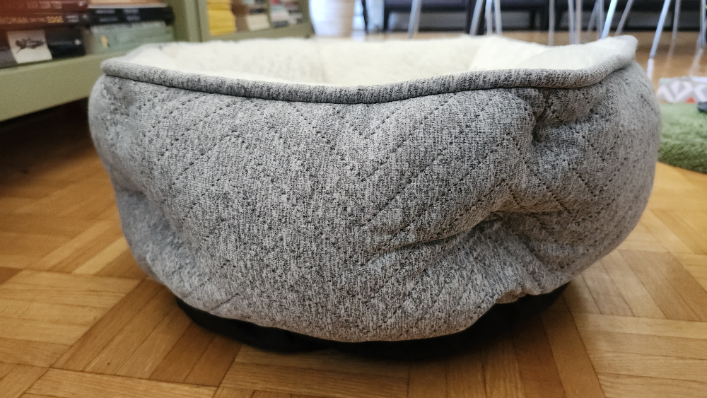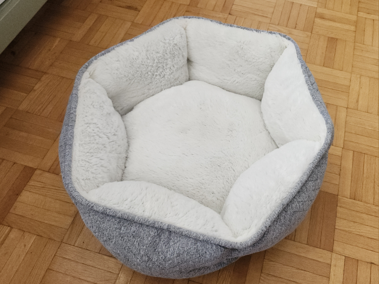 Soft plush hexagonal pet bed, for cats or small dogs. Around 18 inch diameter. Selling because our cat didn't like it.
