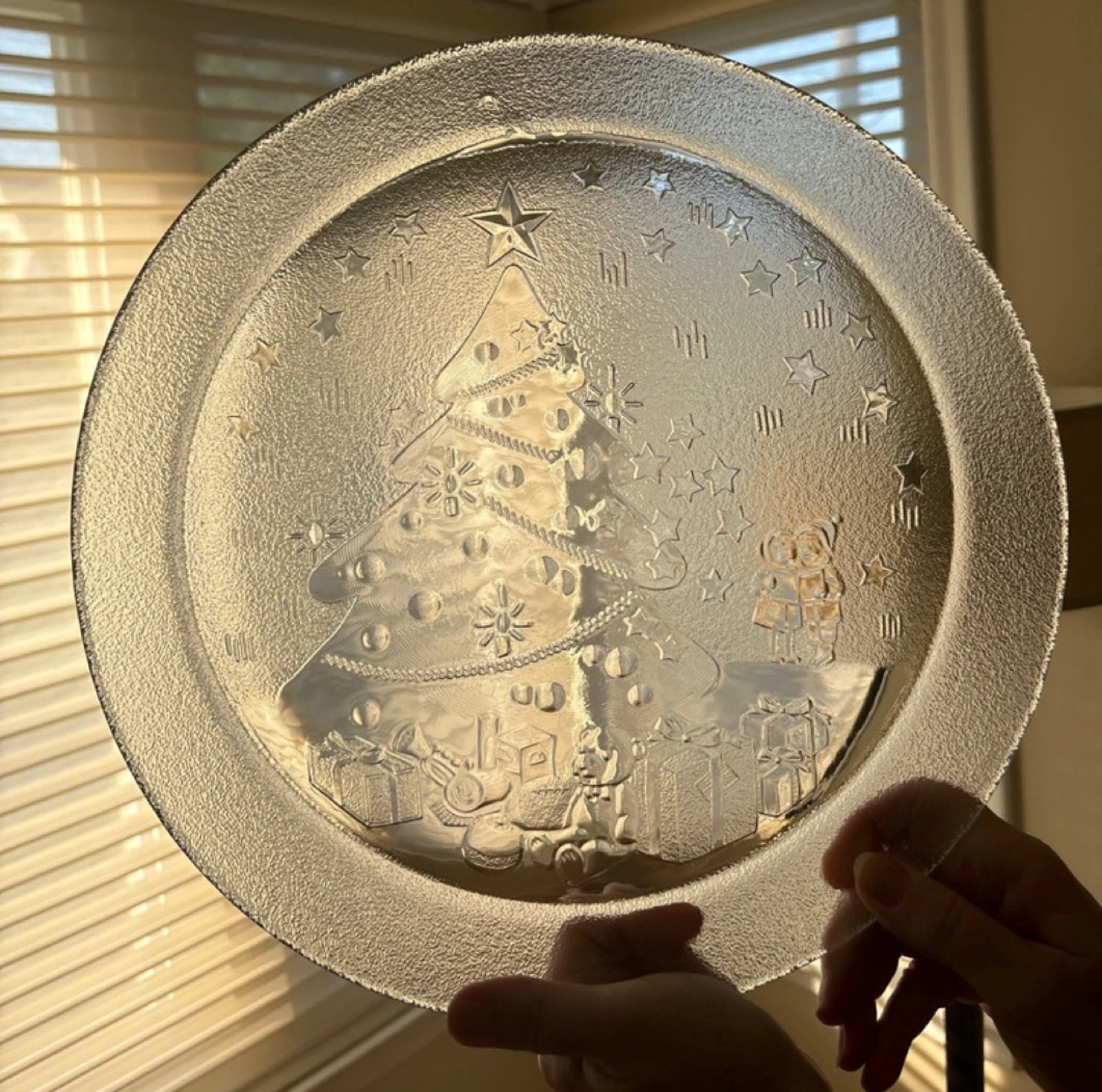 68Beautiful vintage Christmas platter. Features etched Christmas tree design. Frosted glass.Comes in original box. Perfect for holiday entertaining.
