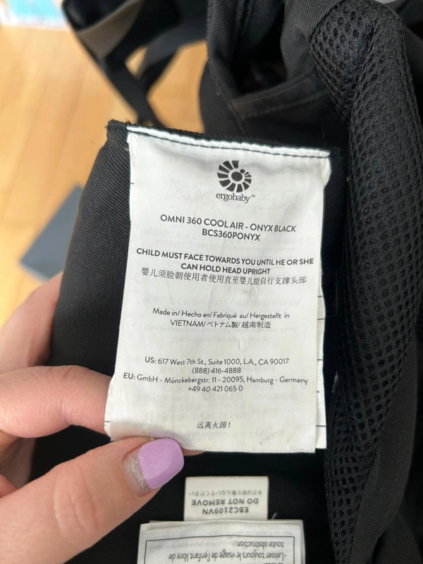 Ergobaby Omni 360 Cool Air baby carrier. Onyx Black. Includes carrier and storage pouches. Used, good condition, like New.