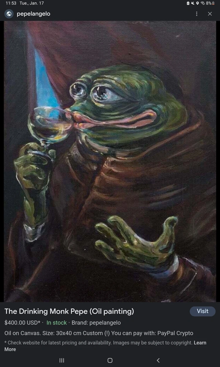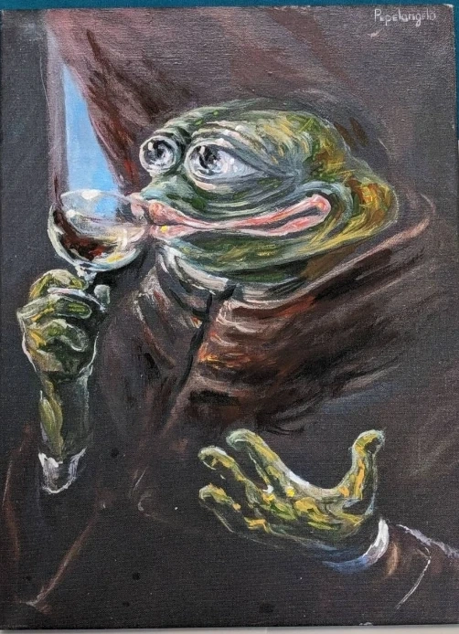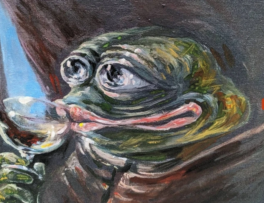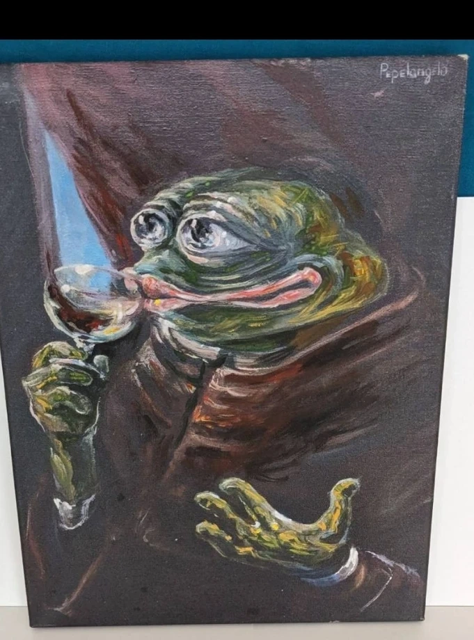 Rarest Pepes in your life. Internet meme in oil on canvas.
