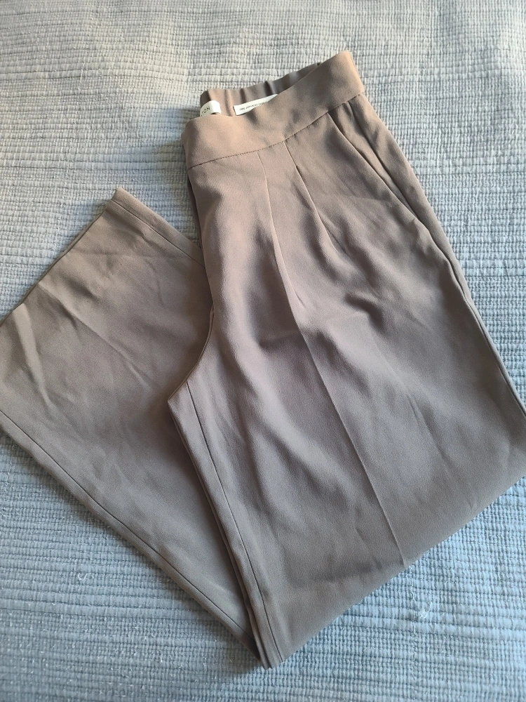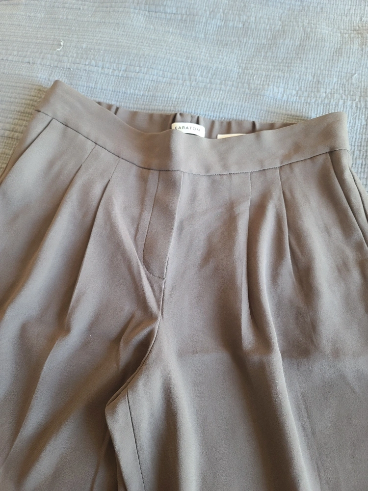 Pleated wide-leg trousers from Aritzia, Babaton. The colour is hard to get on pictures, it's like a darker sage green. Very good condition, with a small pull in the fabric on the outer side of the leg, close to the bottom, shown in picture. Fine Japanese Fabric, Size 2