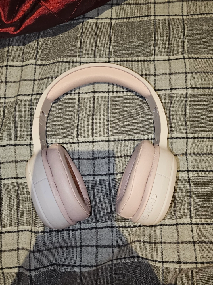 Wireless over-ear headphones. Pink and white colour scheme. Good condition. sorry no charger