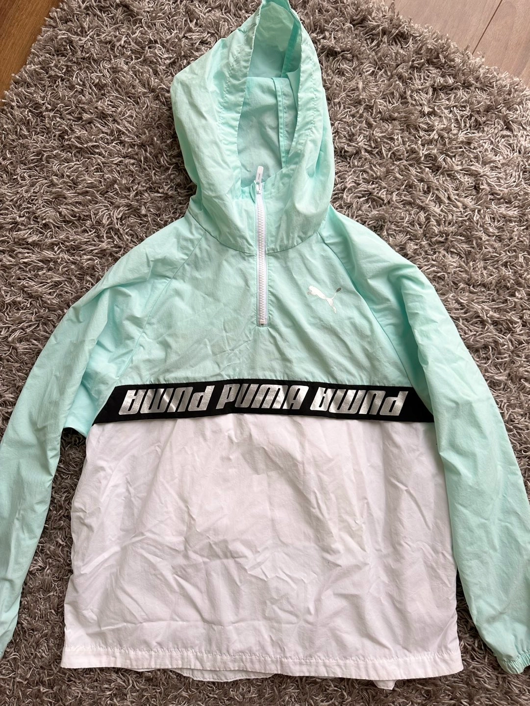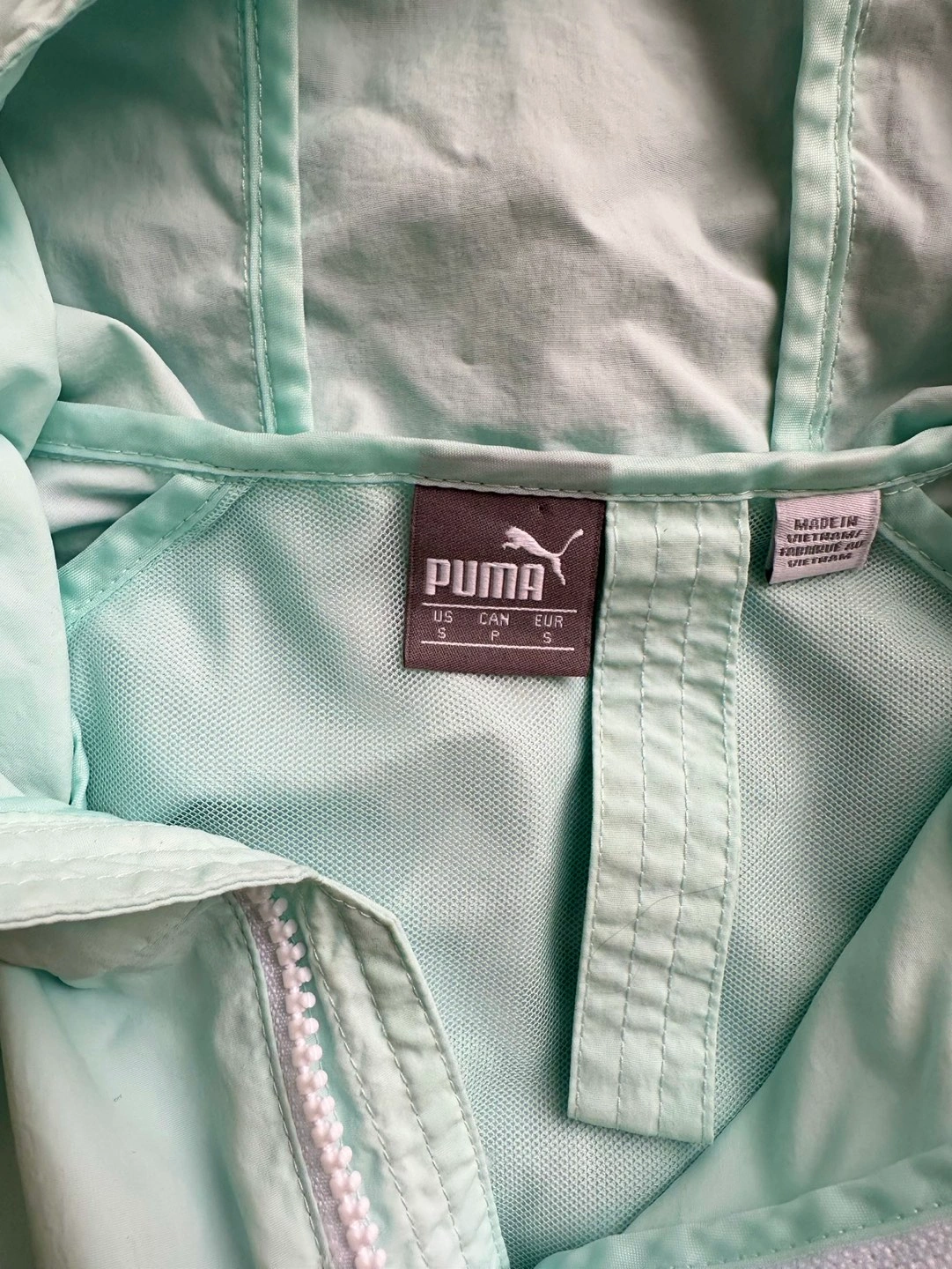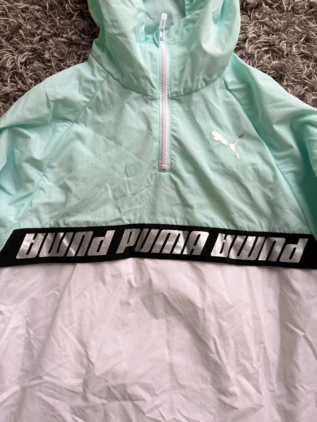 Like new, rarely worn women's Puma half zip sports jacket / windbreaker. Size small. Colour is Aqua.