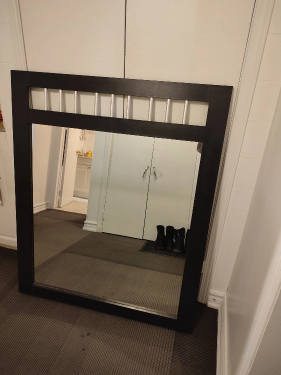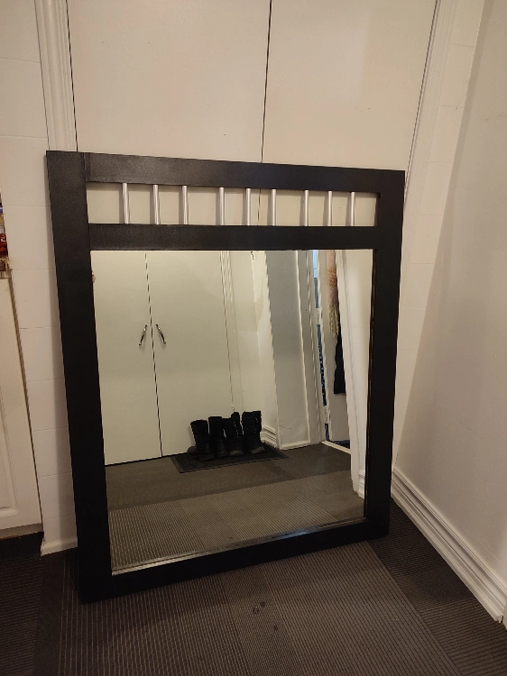 88Large rectangular mirror. Black frame with silver bar accents. Too large and doesn't fit where I wanted it in the new apartment. Painted black, heavy(!). Pickup only near Dupont and Lansdowne intersection, cash or etransfer are ok. Priced to sell, no low ballers please. 37.14 width 46.10 length
